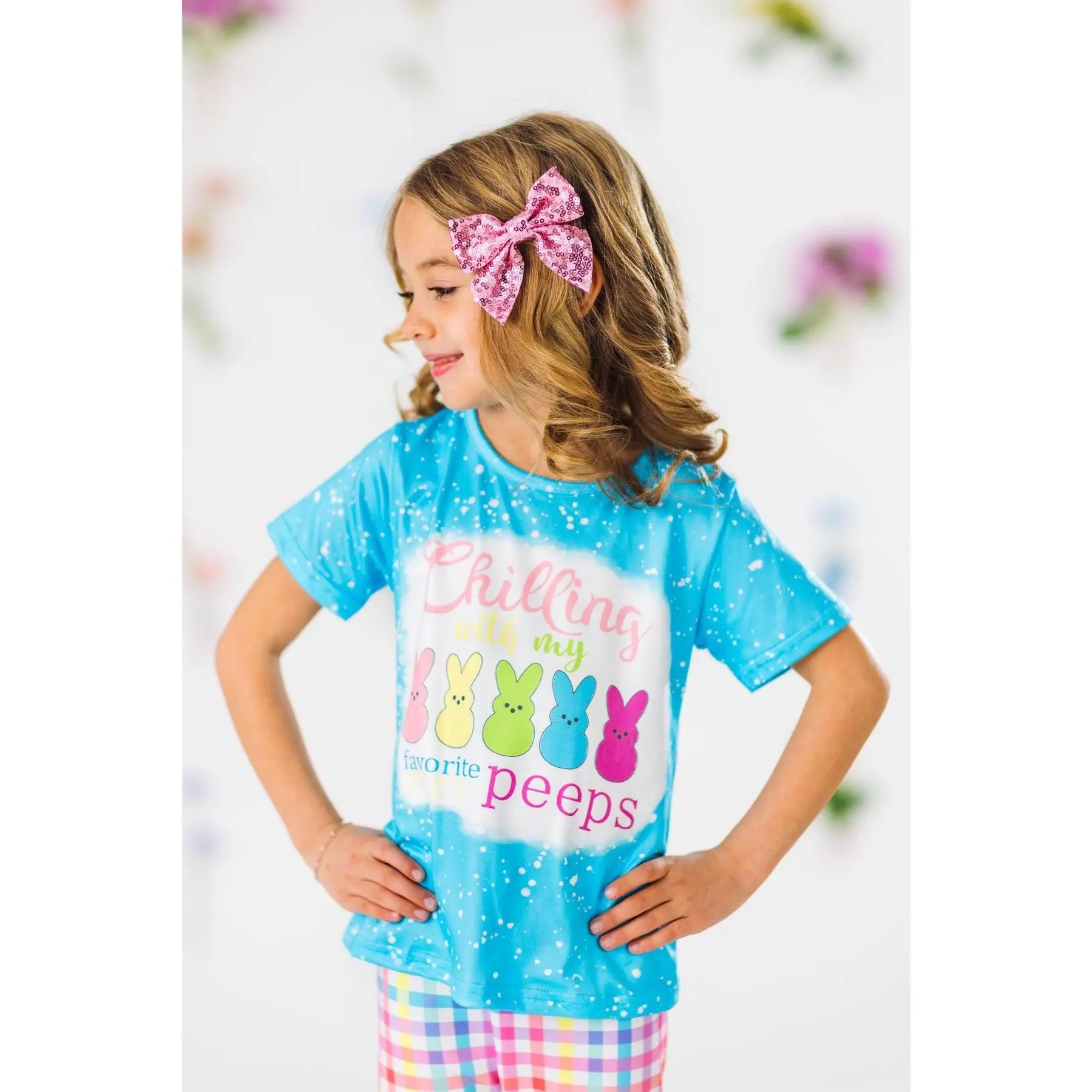 ·Top features short sleeves & "Chilling With My Favorite Peeps" on the front
