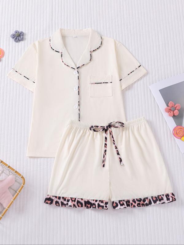 Children's 2-piece pajamas set, new style with short sleeves and shorts with a collar and pockets, fashionable pajamas, Casual Comfy Pajama, beautiful, comfortable soft pajamas, suitable for girls of middle and large size