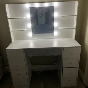 La vanity es de muy buena calidad la pedí para la habitación de mi hija muy fácil de armar y con buenos espacios la calidad y material son buenos la recomiendo ideal para un regalo