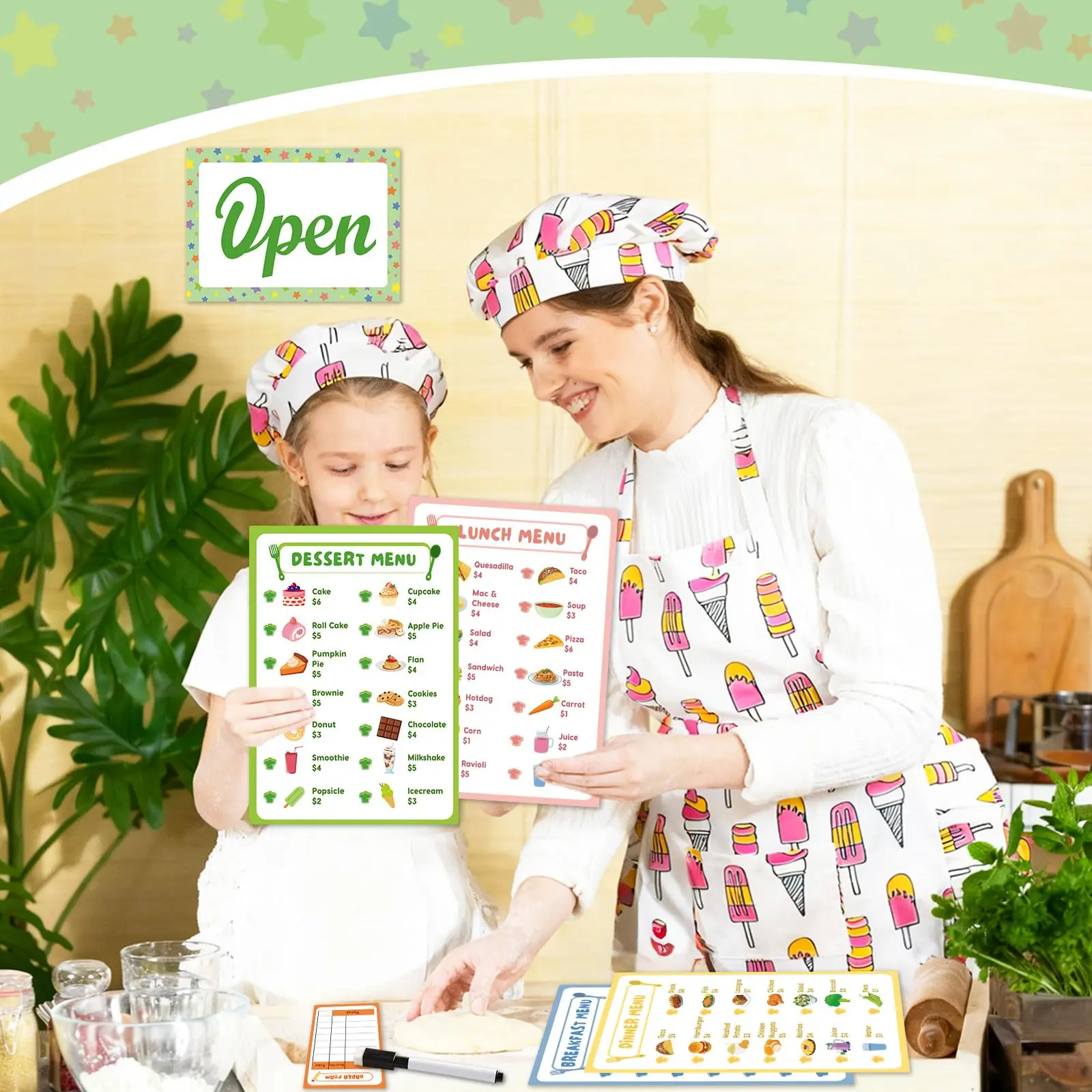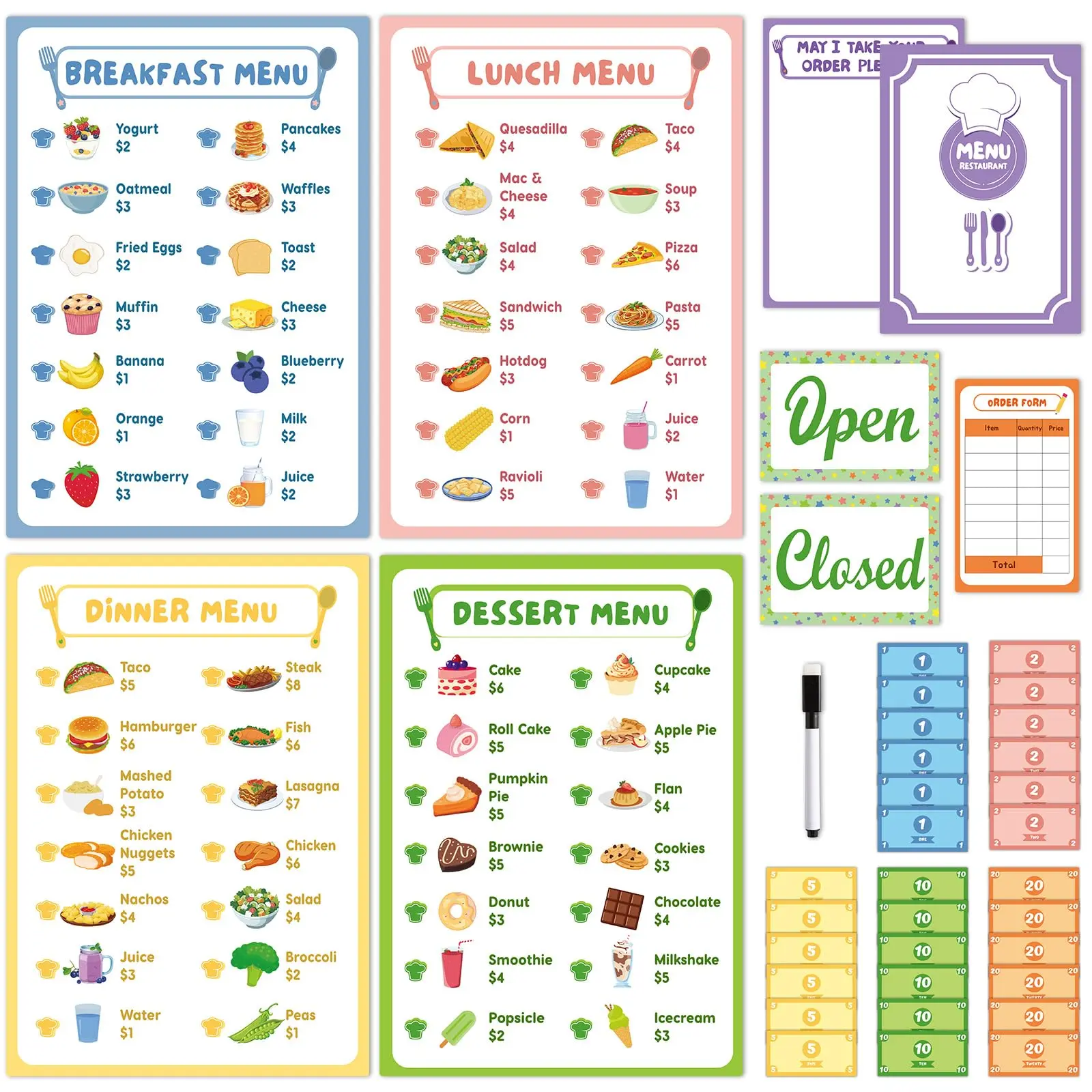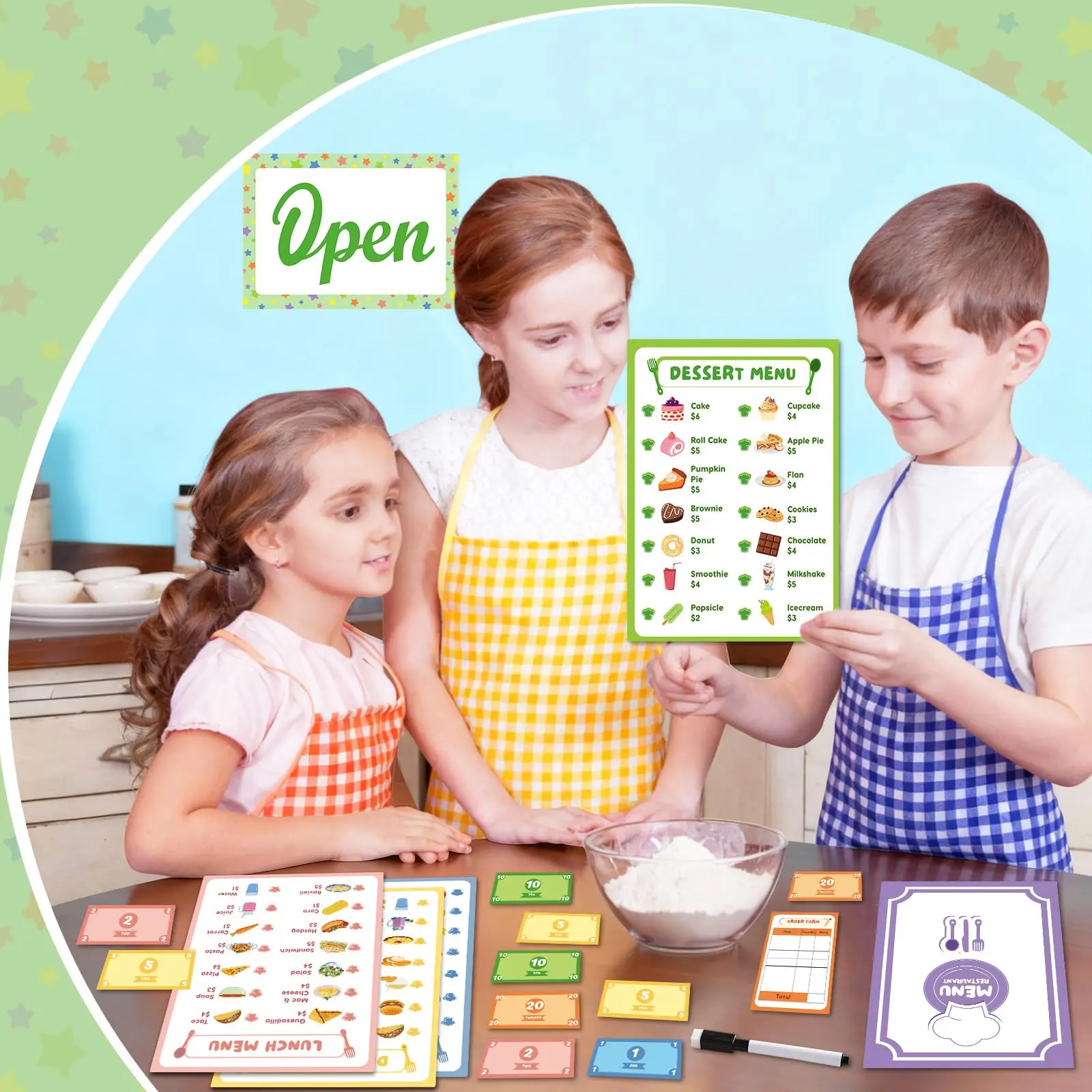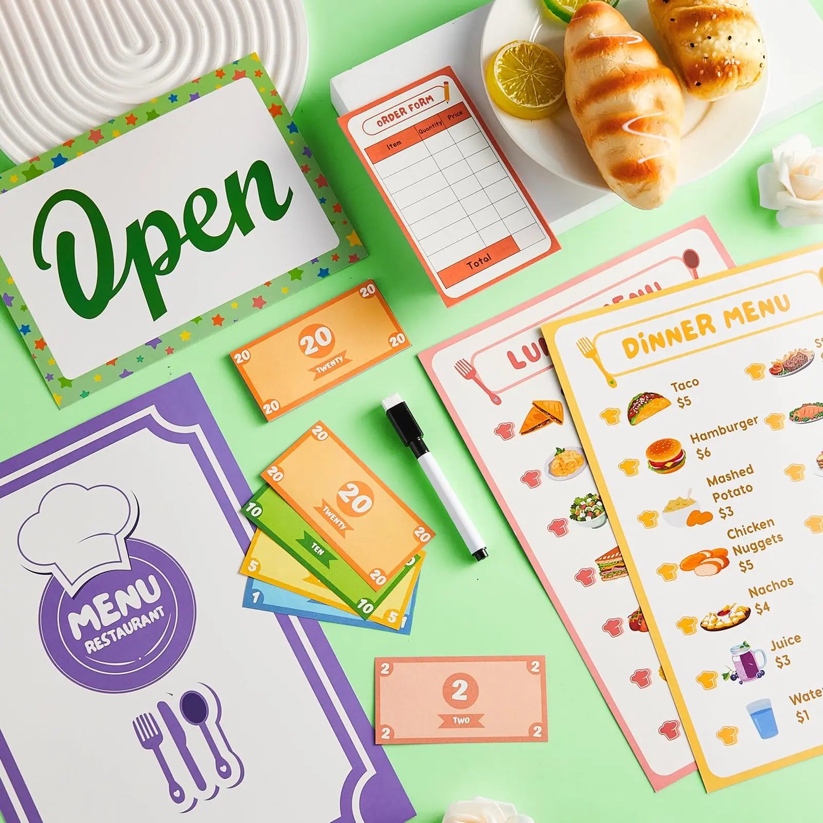 ·Enjoy Fun of Pretend Play: This pretend restaurant menu set encourages kids to role-play as cooks, waiters, or customers. They can practice creativity, social skills, and math while having fun. Restaurant menus for kids pretend play blend learning with play, helping kids build communication skills, develop social etiquette, and enjoy endless hours of imaginative restaurant adventures.