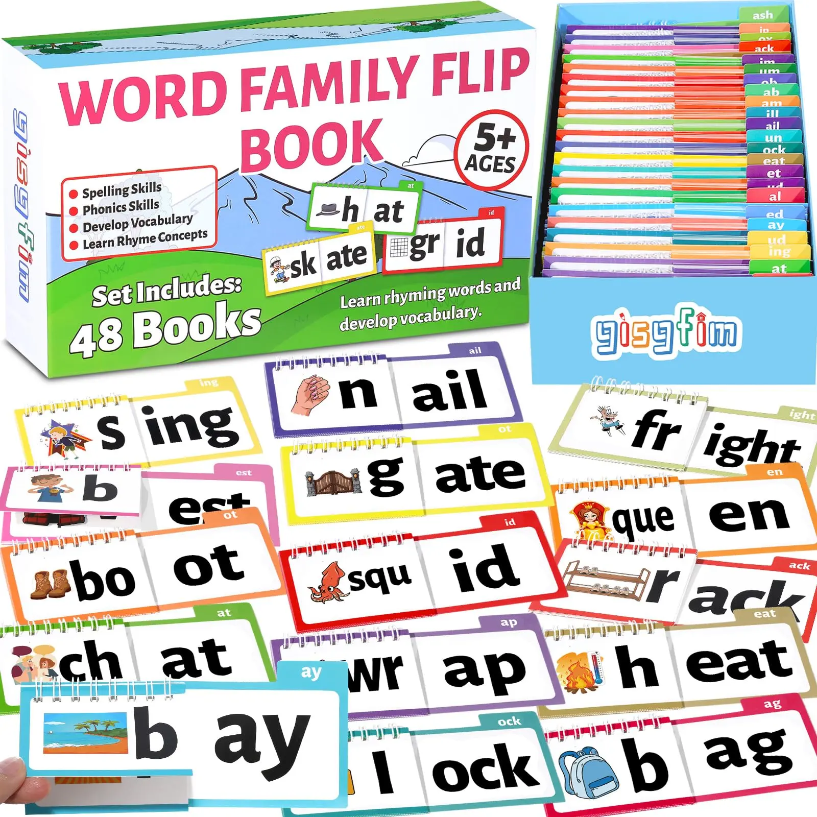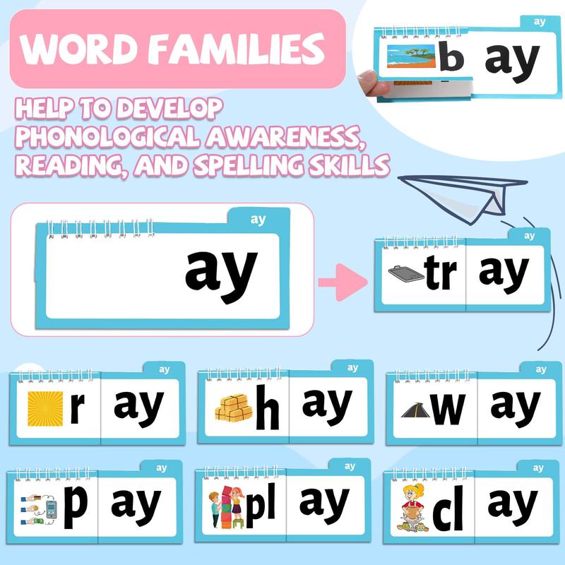 ·Explore Basic Word Families: this set of 48 word family flip books introduces children to basic word families. Each word family includes a corresponding word and vivid pictures, making it easier for children to recognize word patterns and develop reading skills with confidence