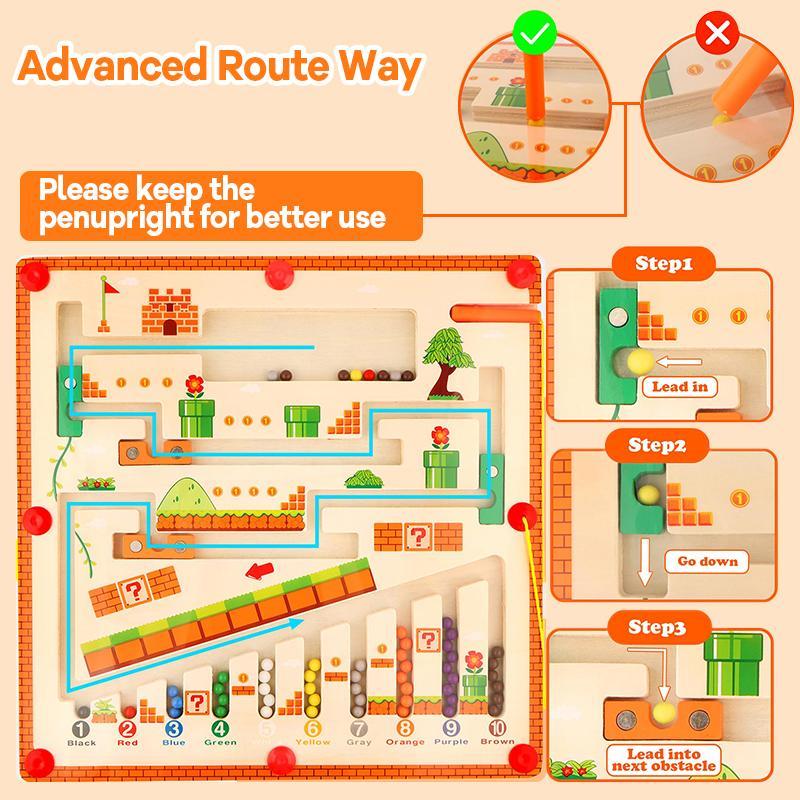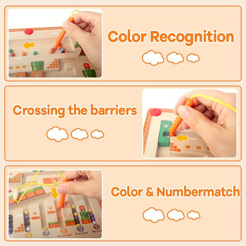 Simple play: Use the magnetic rod to easily guide the beads through the maze from the left channel; Advanced play: Start from the right channel and accurately pass through the complex obstacles with the magnetic rod, which is conducive to cultivating hand-eye coordination and problem-solving abilities.