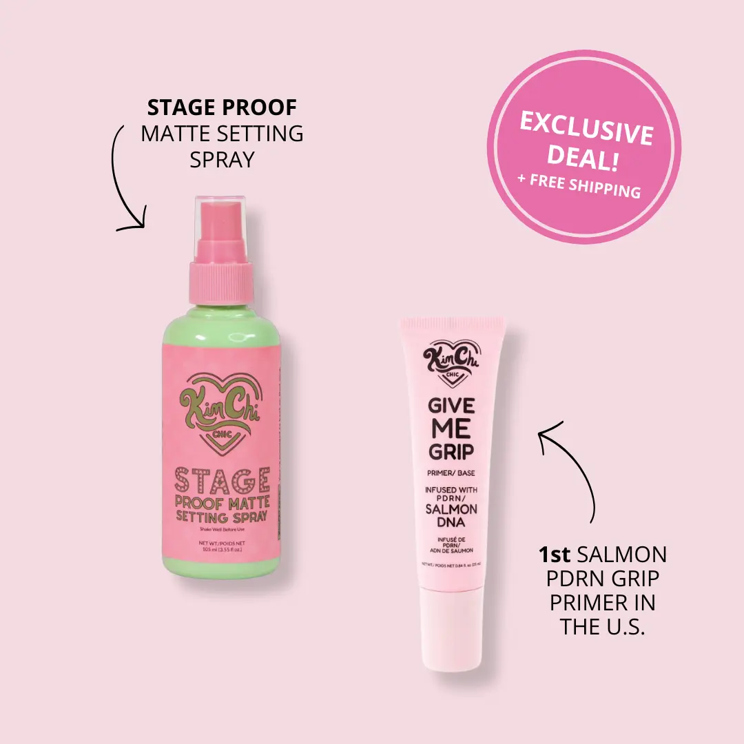 GIVE ME GRIP isn’t just a primer, it’s a K-beauty secret your makeup routine has been begging for. Powered by PDRN, this gel primer gives you a base that serves you glow, grip, and glam that won’t quit.Packed with skin-loving goodness like PDRN for radiance, niacinamide to brighten, hyaluronic acid to plump, and rose + peppermint water to soothe, this primer is basically a spa day in a bottle. All that plus a grip so fierce your makeup won’t budge, crease, or slip.More than a primer—it’s your glow grip bestie — instant hold, smoother finish, and skin that feels soft, luminous, and ready to serve every single time.You've managed to beat on that mug, now use the STAGE PROOF MATTE SETTING SPRAY to seal that masterpiece. You've worked too hard to let that makeup go anywhere!Trust us, the Stage Proof Matte Setting Spray will become part of your daily routine.This setting spray has a bonus ingredient -- Silky Essence from rice. This ingredient is Asia's best-kept secret for centuries of gorgeous skin! Mist away babes! Net Weight: 105ml (3.55 fl oz)