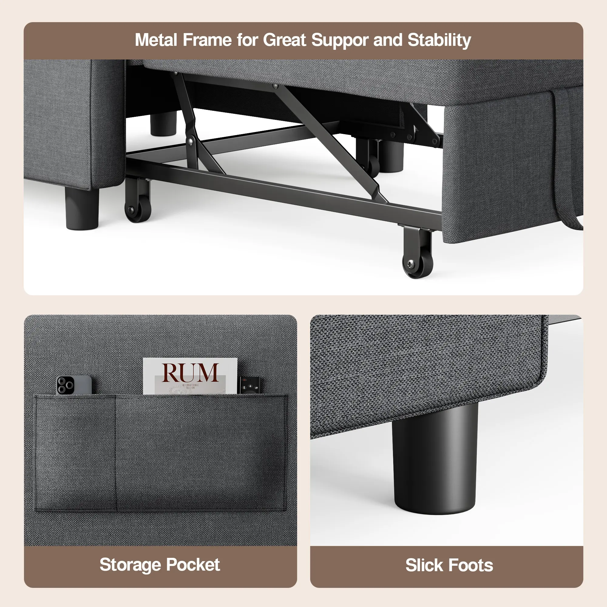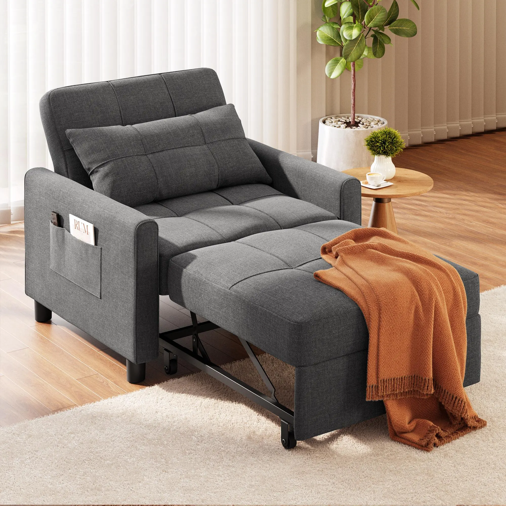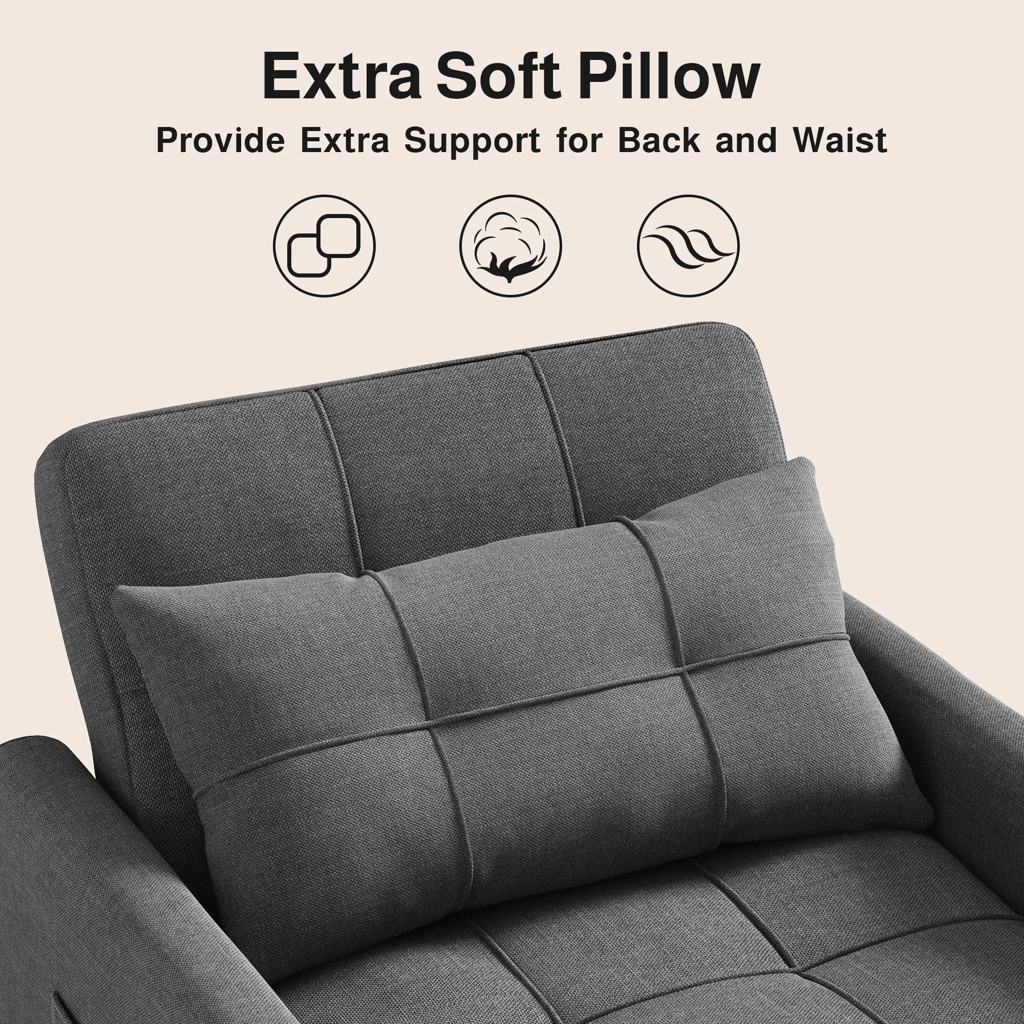·Stable and Durable: The sleeper chair features a solid steel frame and high-quality sponge for lasting support and resilience. The breathable linen fabric ensures excellent comfort for a satisfying seating experience