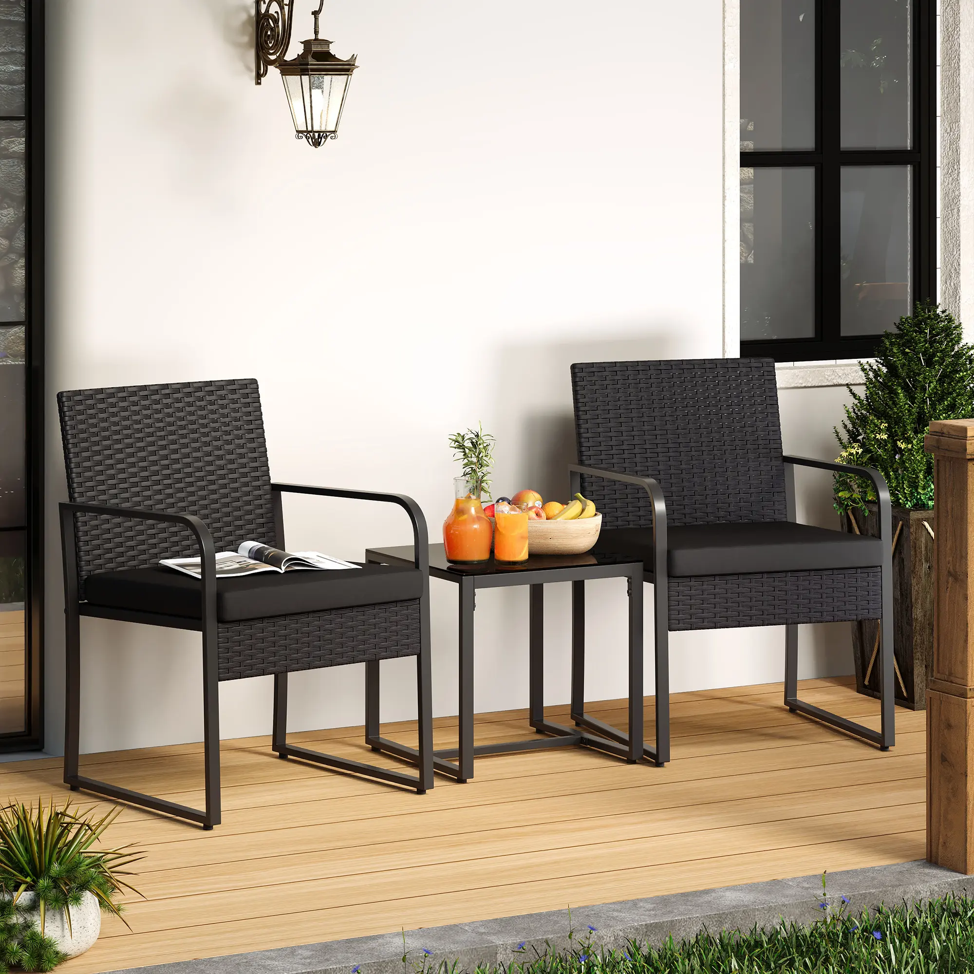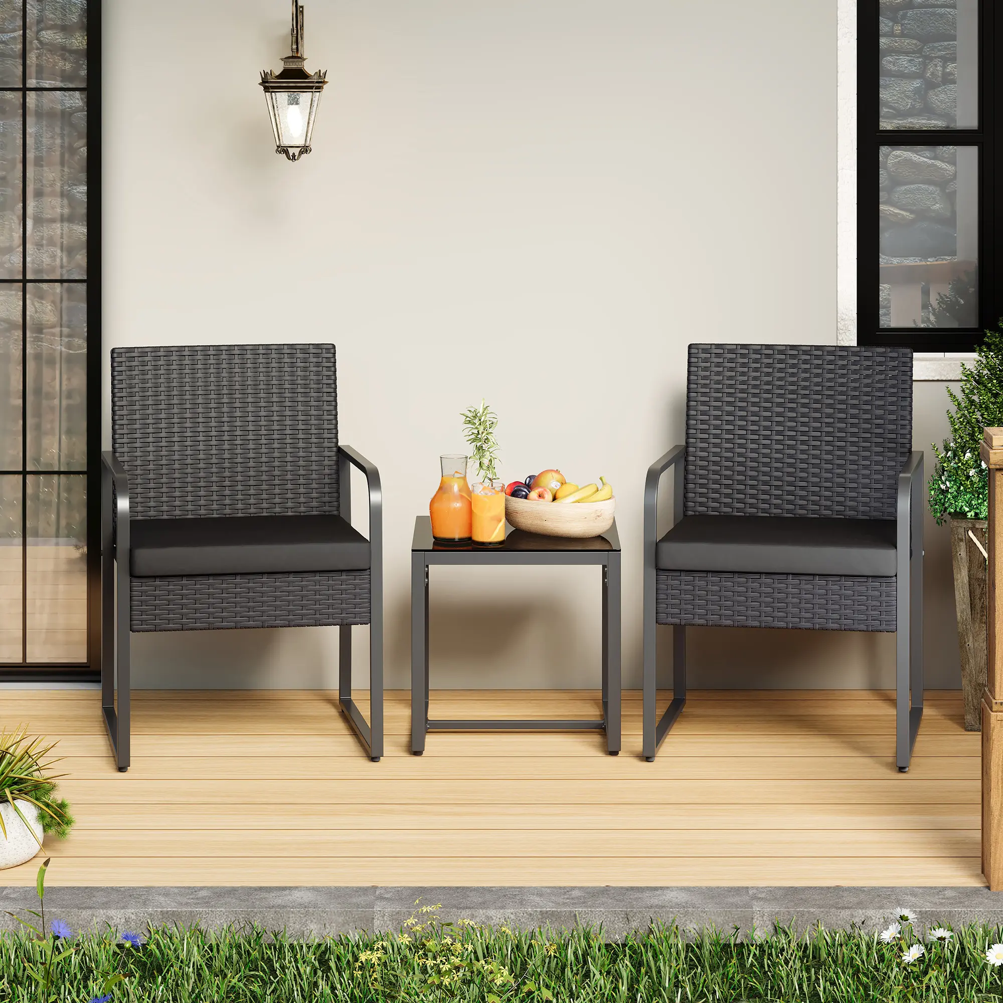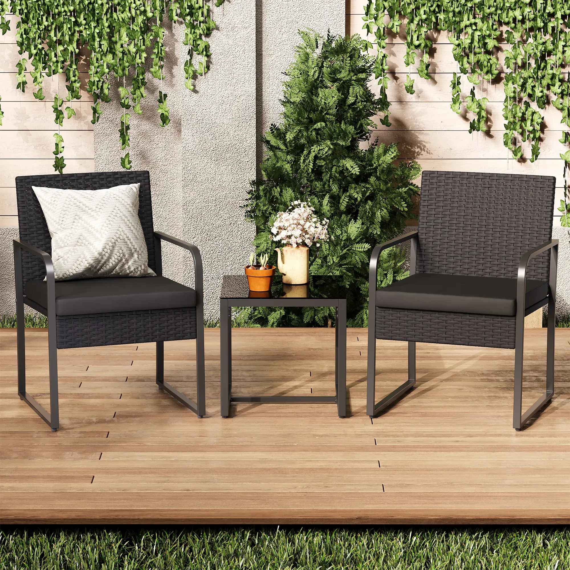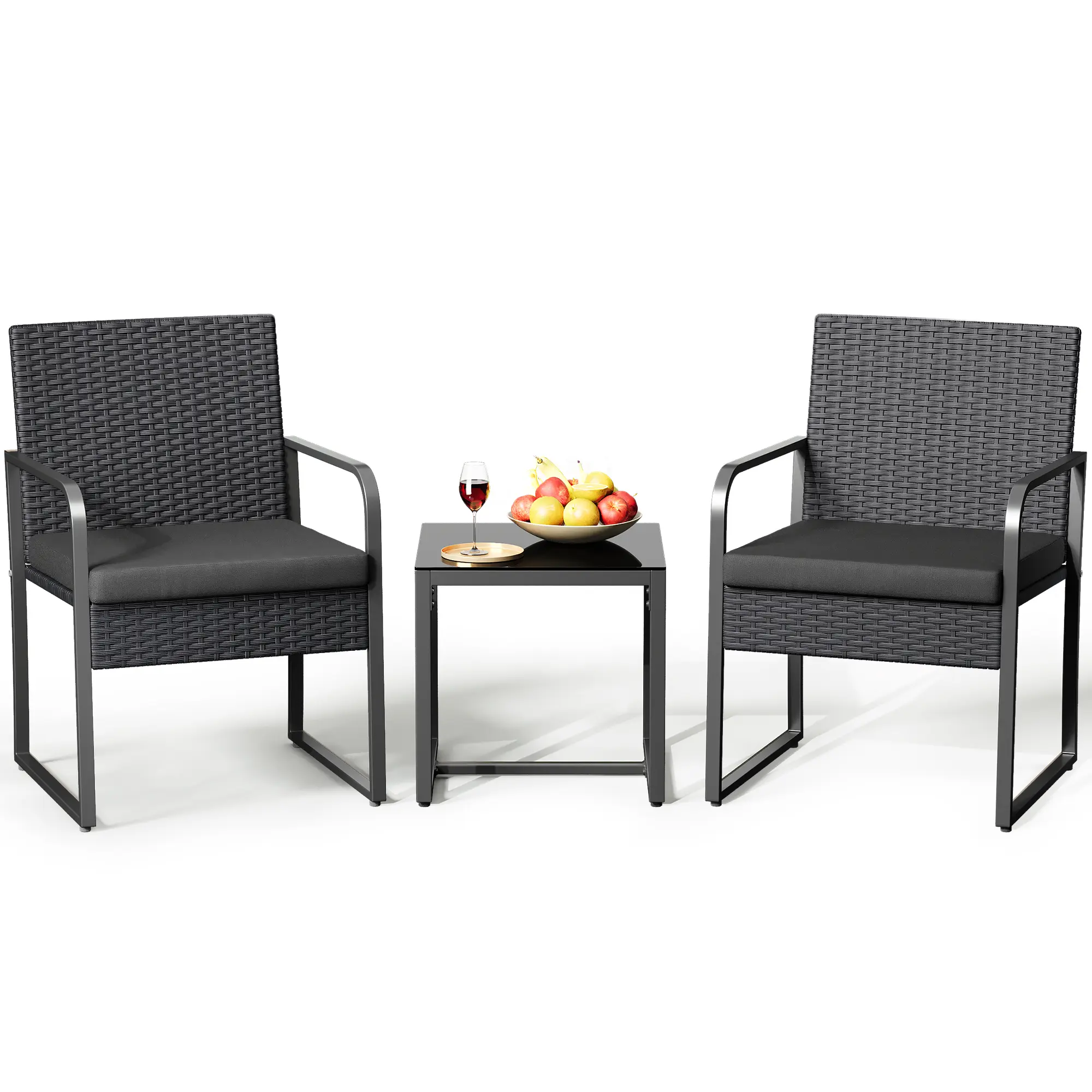 ·Comfortable Experience: The seat cushions of this wicker chair bistro set are filled with high-density sponge, giving you a wonderful sitting experience and comfort when you enjoy your leisure time