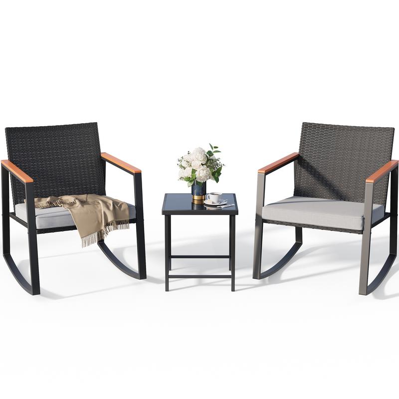·Comfortable and Practical: This patio bistro set includes two spacious wicker chairs and a glass-top coffee table—perfect for your leisure time. The high-elastic foam seat cushions offer supportive comfort, making it ideal for relaxing outdoors