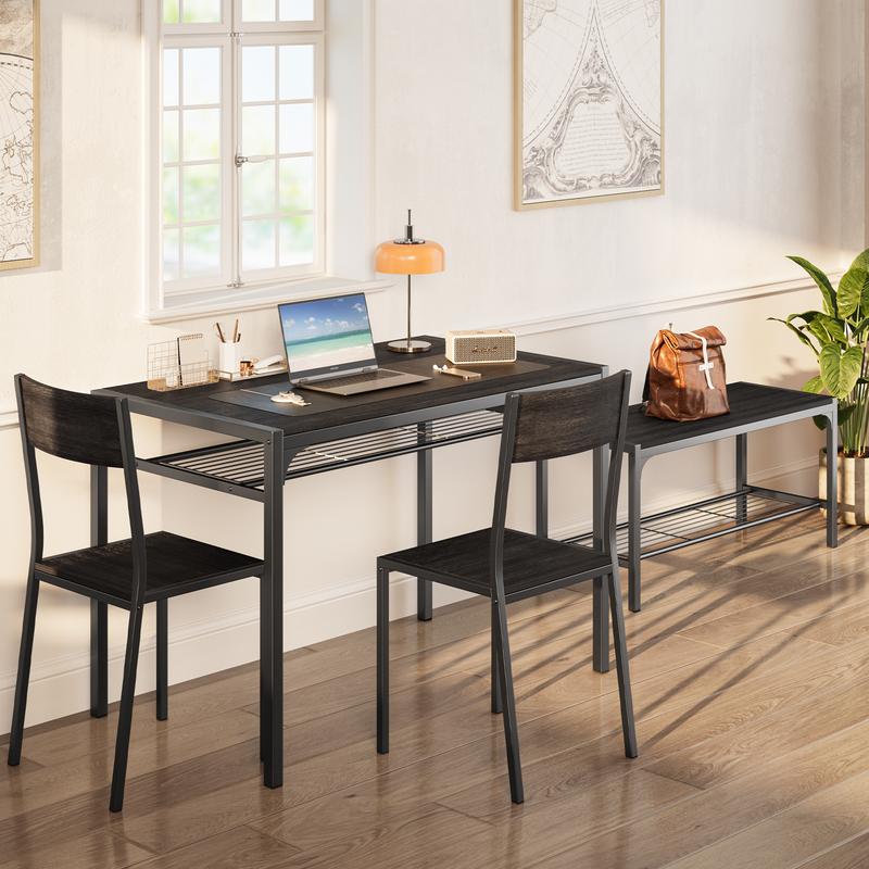 ·Suitable for Small Spaces: Both the chairs and bench can be tucked neatly under the table when not in use, saving valuable floor space. This four-piece set is an ideal choice to keep your kitchen, dining room, or living area organized and tidy