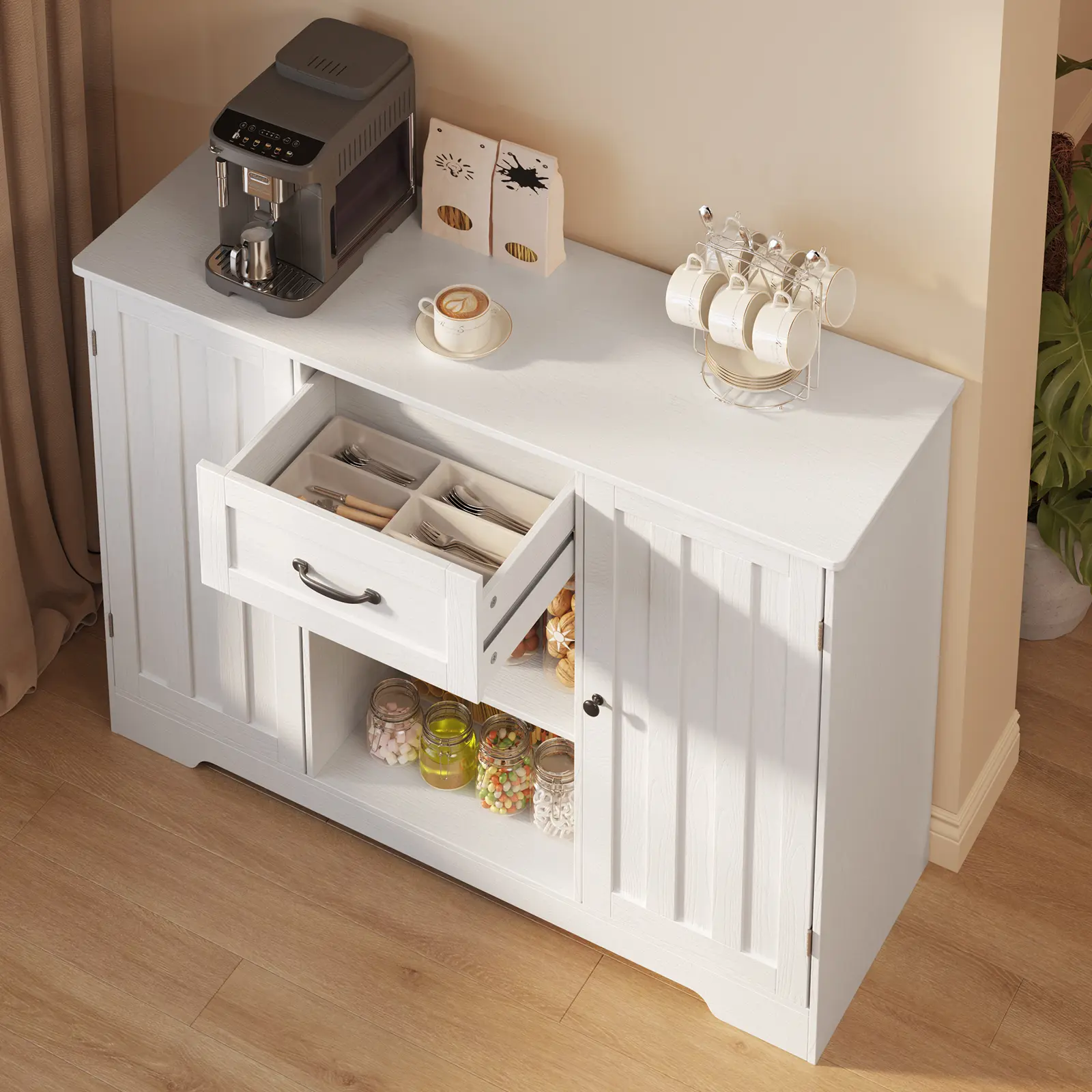 ·Versatile Cabinet: Whether you need a buffet sideboard for the kitchen, a coffee bar station for the dining room, or a pantry cabinet to organize spices and canned goods, this modern storage cabinet is perfect for keeping everything tidy and organized in style