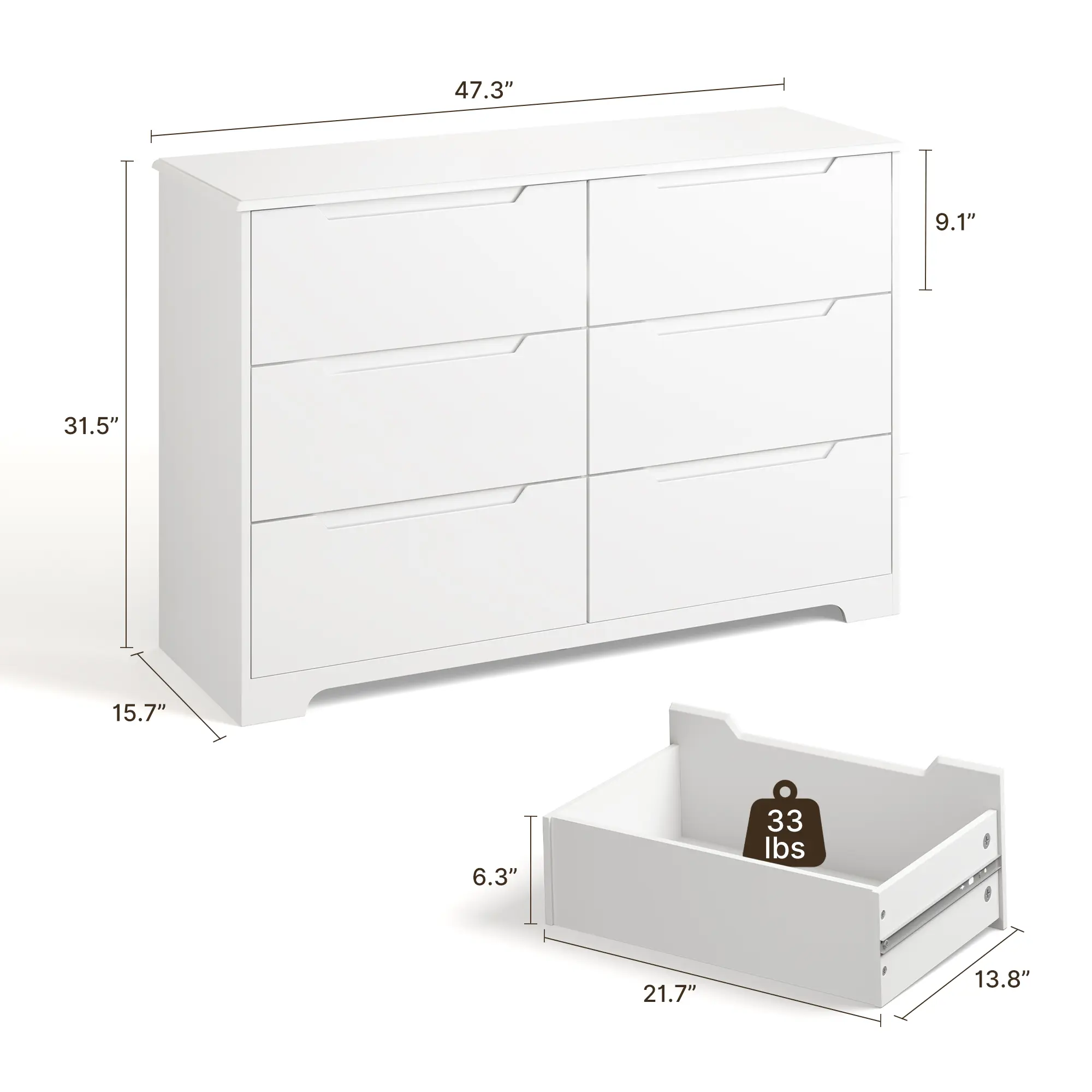 ·Stylish Minimalist Design: This 6 drawer double dresser with its clean lines, flat panels and unique cut-out handles effortlessly complements any interior style, whether you're looking for minimalist, contemporary or traditional. It perfectly blends form and function, adding a touch of sophistication to your bedroom, living room or entryway