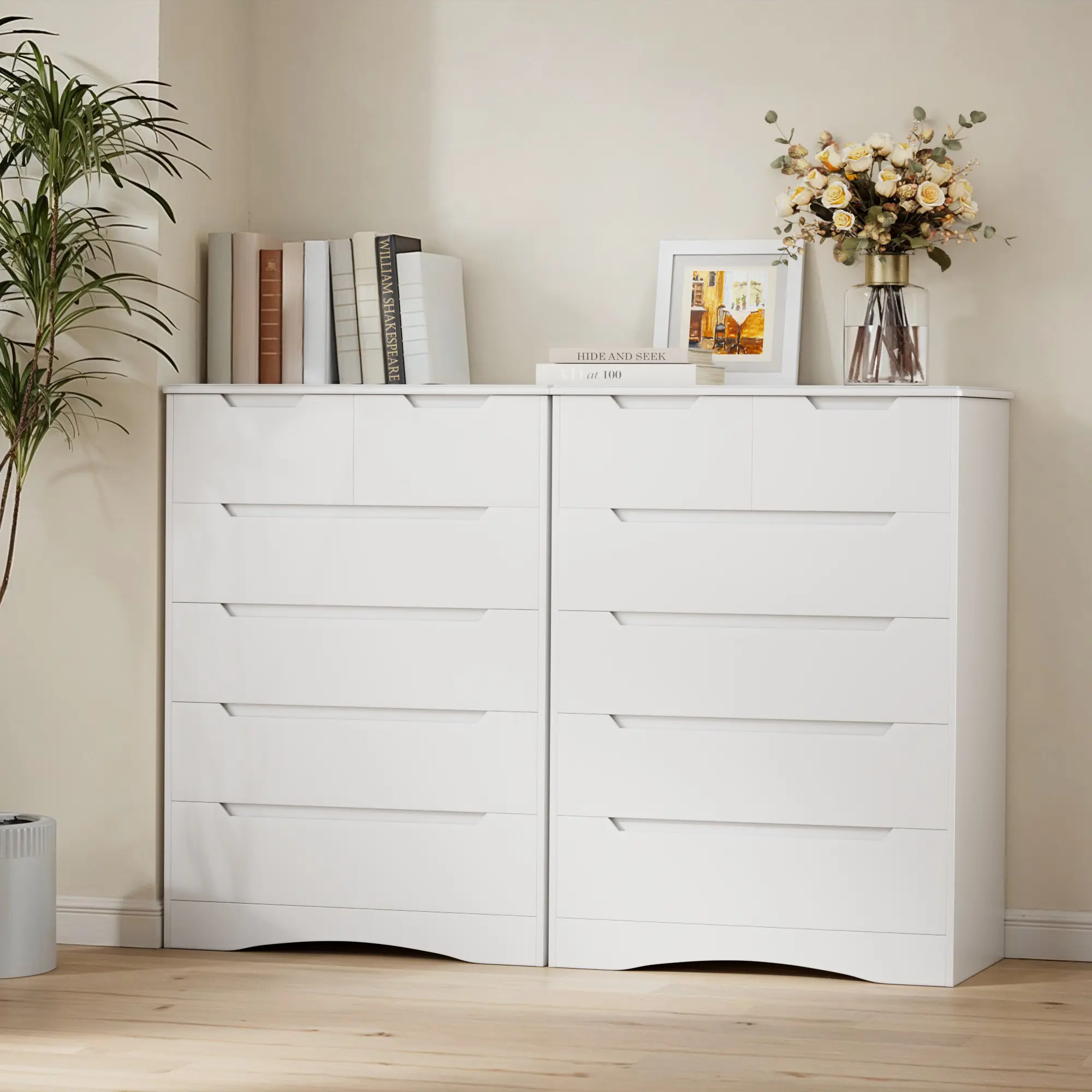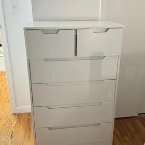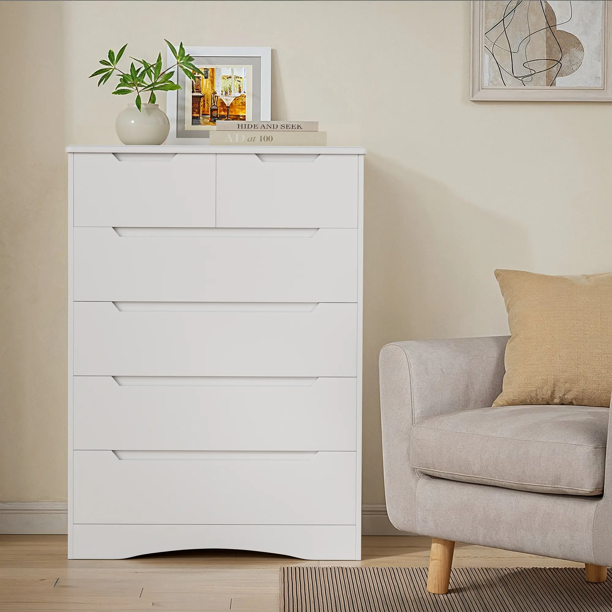 ·Large Capacity: This white bedroom dresser 28.35'' D * 15.75'' W * 43.7'' H features six spacious drawers in two sizes, perfect for versatile storage. The top surface provides easy access for displaying mirrors, clocks, bags, or everyday essentials