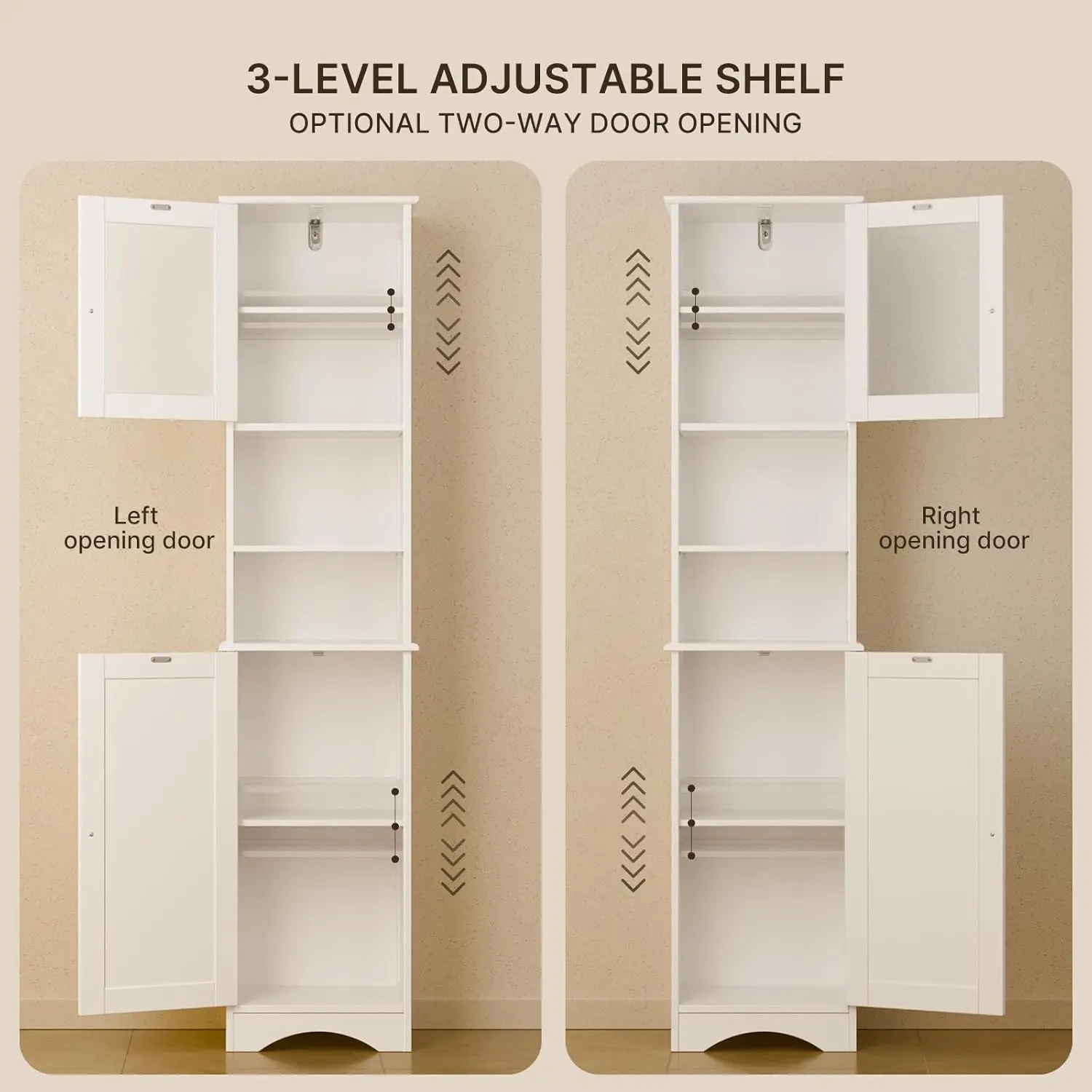 ·Stable and Safe: The practical bathroom cabinet is made of waterproof MDF for easy cleaning. Magnetic catches enable smooth operation, and the anti-tilt device boosts stability and safety