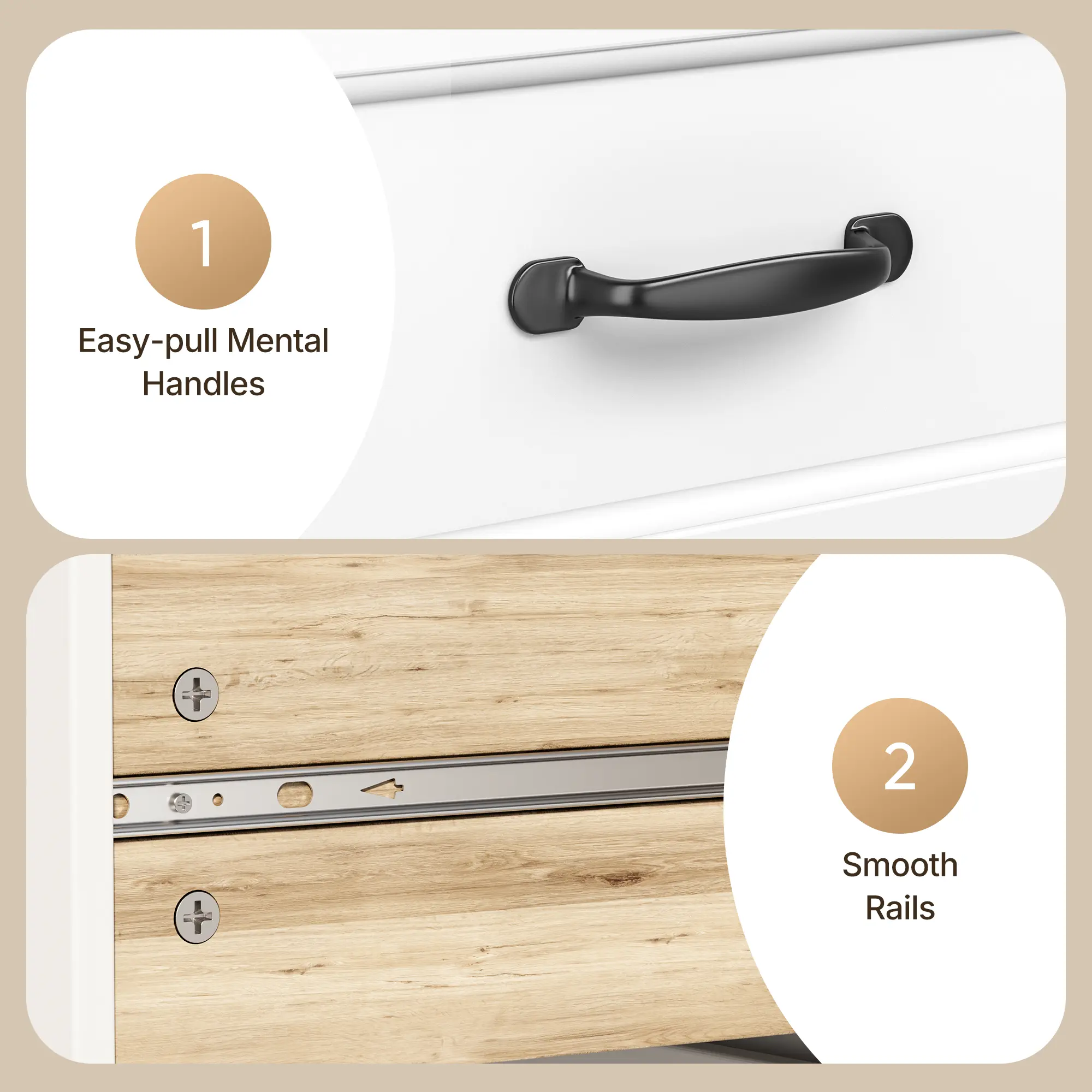 ·Simple and elegant design: The white wooden exterior is matched with the top of the wood grain finish. In addition, the classic black color is matched with the metal handle to create a simple and stylish appearance, adding an elegant and atmospheric charm to the room, which can be easily integrated with various home decoration styles