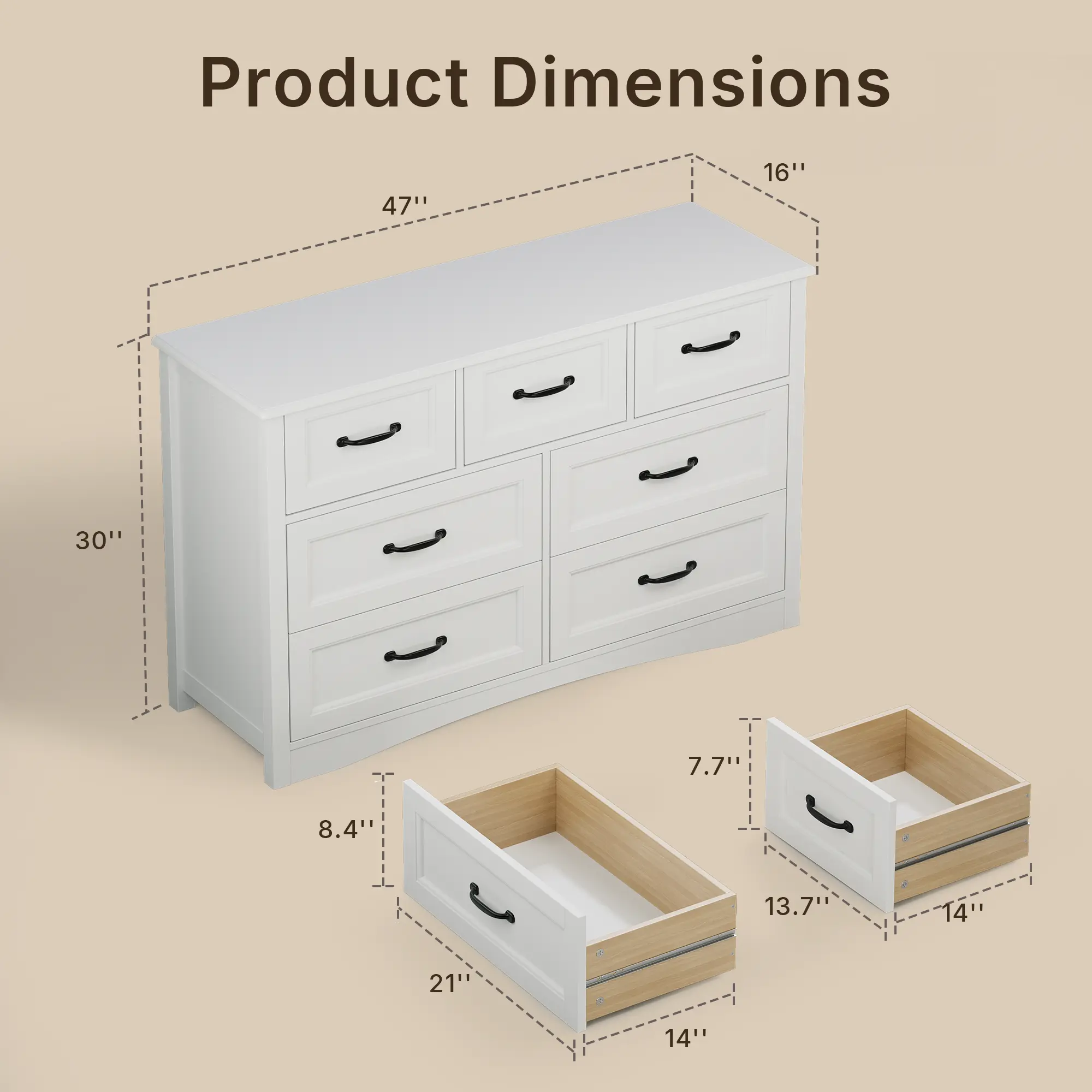 ·Ample Storage: With seven spacious drawers, this cabinet provides generous space to neatly store your clothes, accessories, and other essentials, keeping your bedroom organized