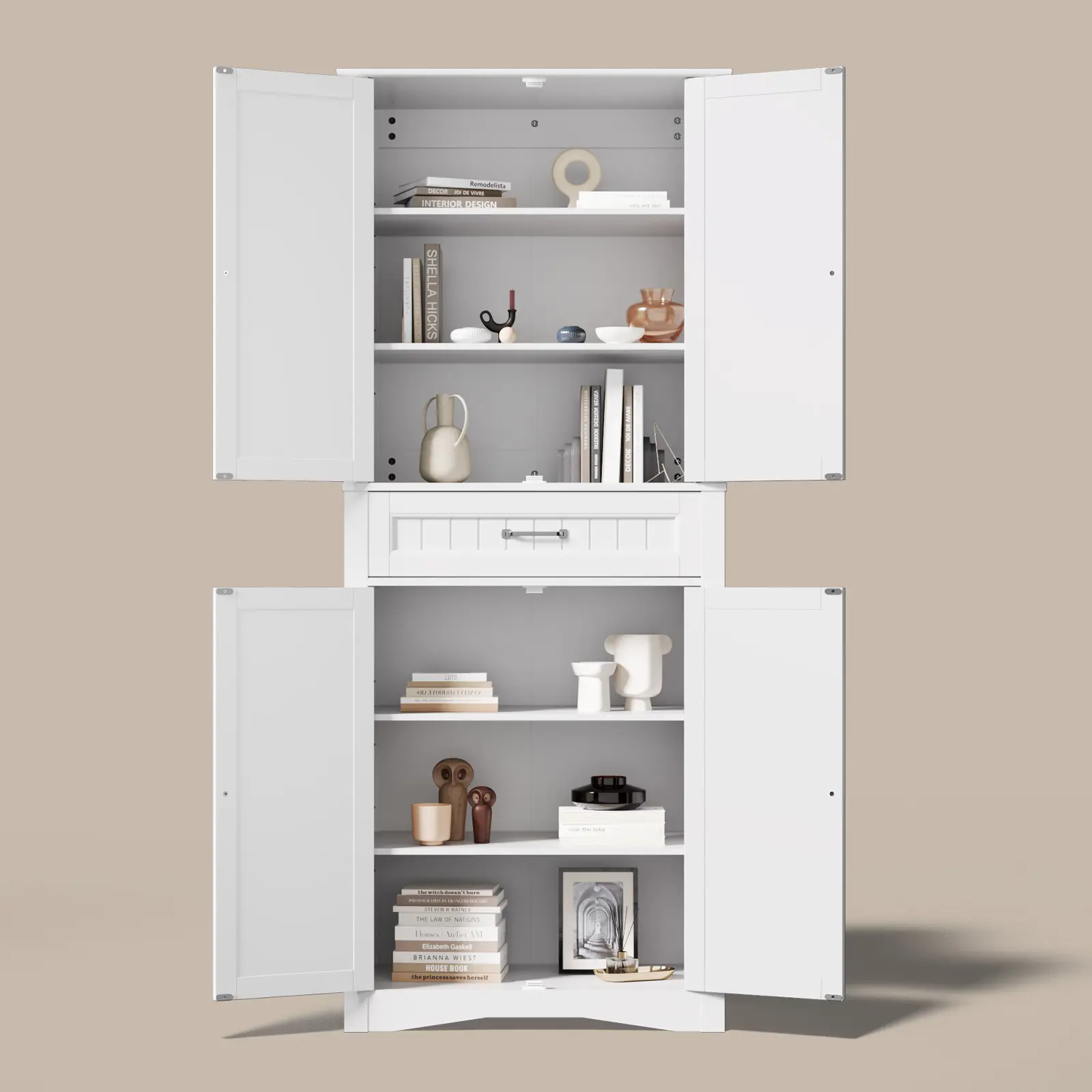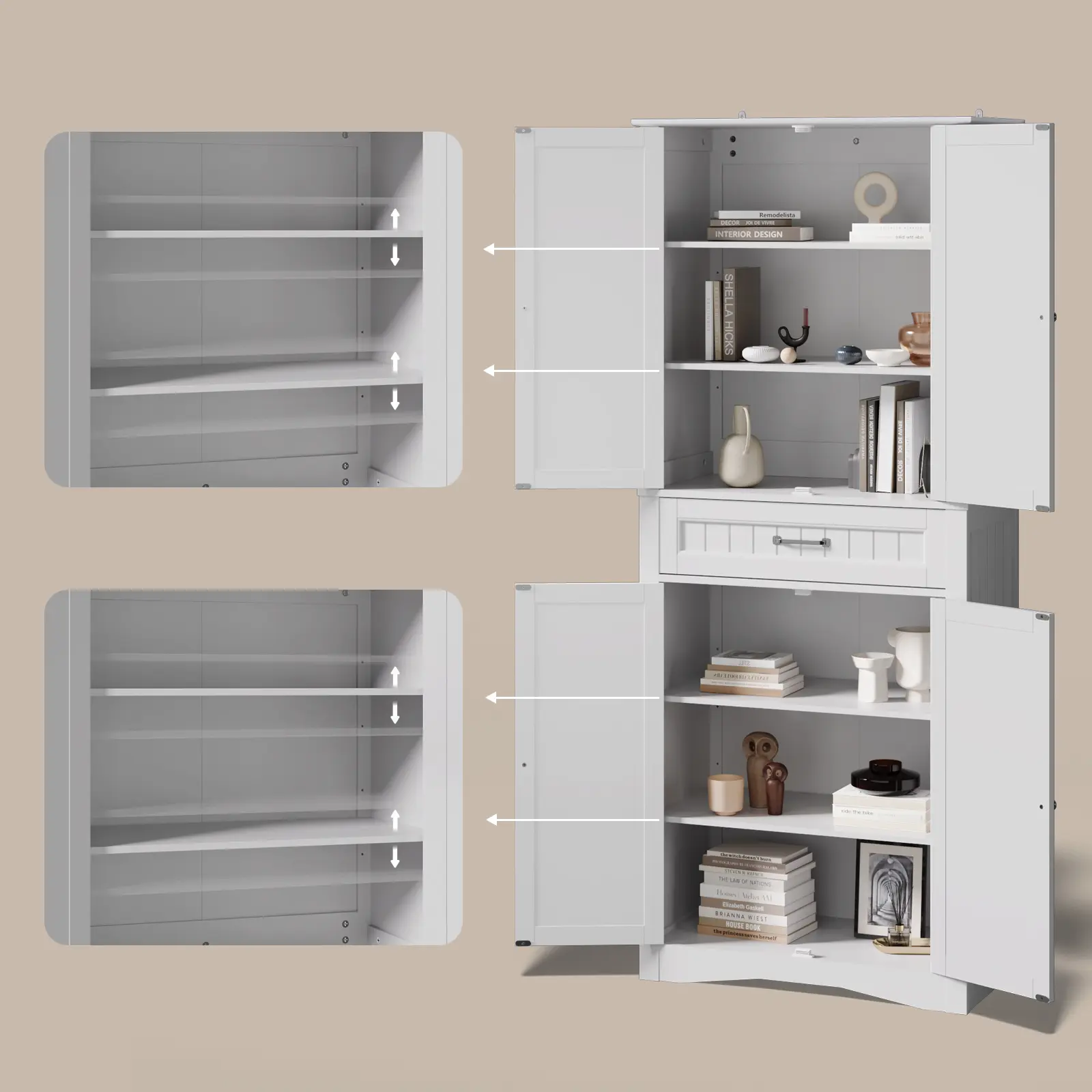 ·Plenty of Storage Space: This kitchen pantry cabinet features two magnetic-door cabinets and a spacious slide-out drawer for versatile storage; with adjustable dividers, customize the space for utensils, snacks, and dishes to keep your home organized