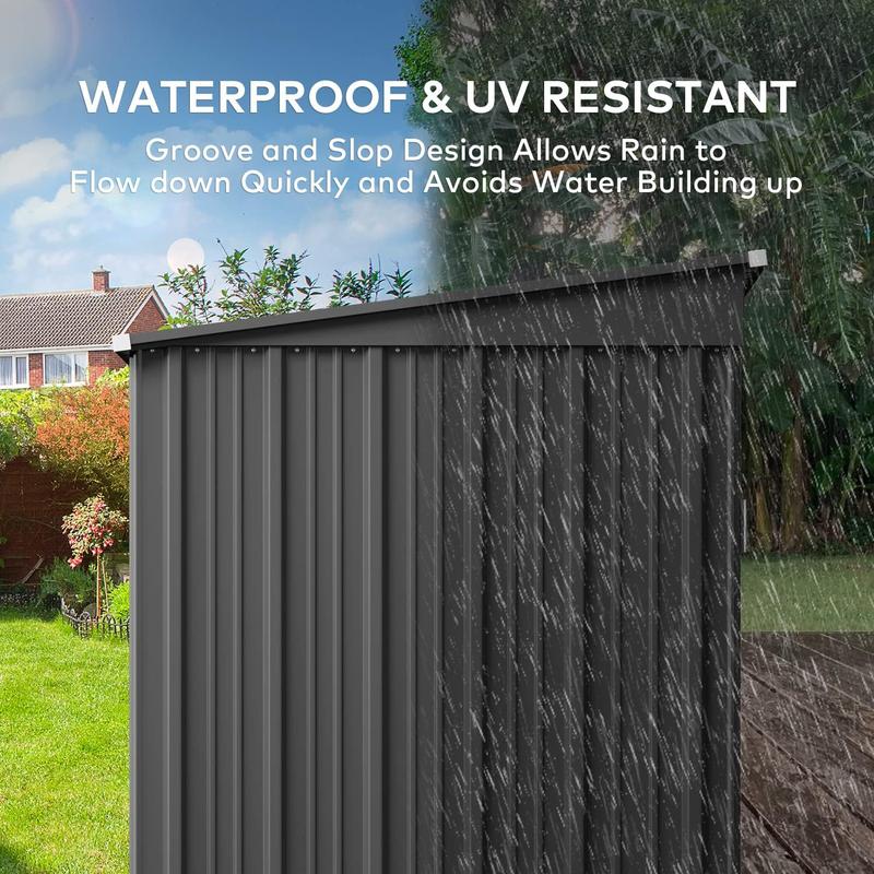 ·Built to Last:Constructed from durable galvanized steel, our Gizoon patio storage shed is designed to withstand the elements. The innovative spray painting technology ensures it's UV-proof, while the fixed tube design of the hinged door enhances stability and longevity, giving you peace of mind for years to come