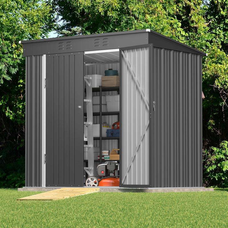 ·6' x 4' Large Storage Shed:Maximize your outdoor space with our spacious 6' x 4' storage shed, measuring 75.6" L x 48.5" W x 71.3" H. Featuring a generous door size of 44.5" L x 62.5" H, this garden shed is ideal for storing your snow blower, lawnmower, outdoor furniture, bikes, grills, generators, and so much more
