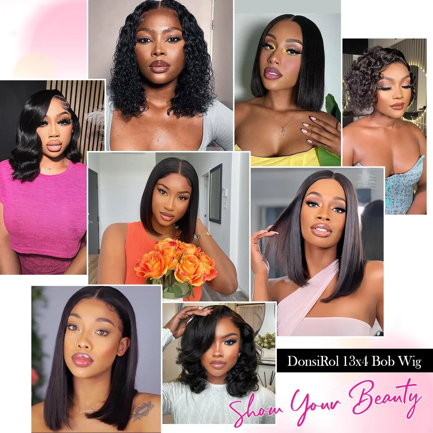 Hair Name: Straight (Bob) Wig Features:·Pre-Bleached Knots(Natural Scalp)·Pre-Plucked(Natural Hairline)·Hair Texture: Straight 100% Human Hair Lace Type: 13x4 transparent Lace Density: 200% Cap Size: 10''-16''·Shipment: UPS/USPS/FedEx fast shipping