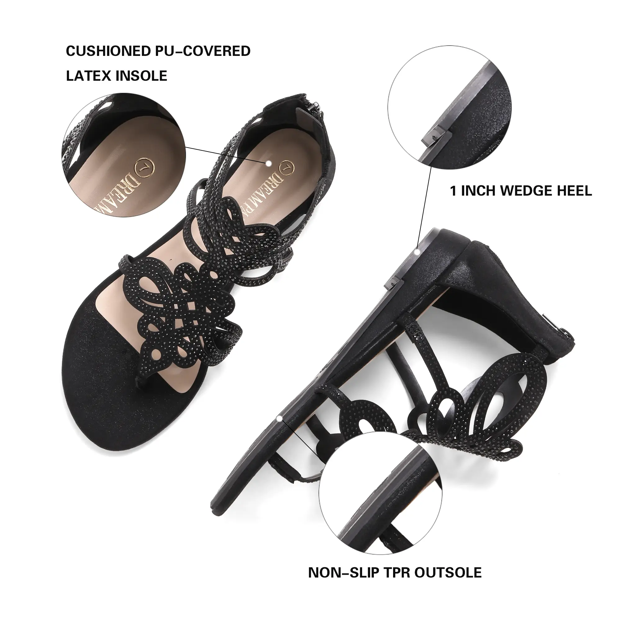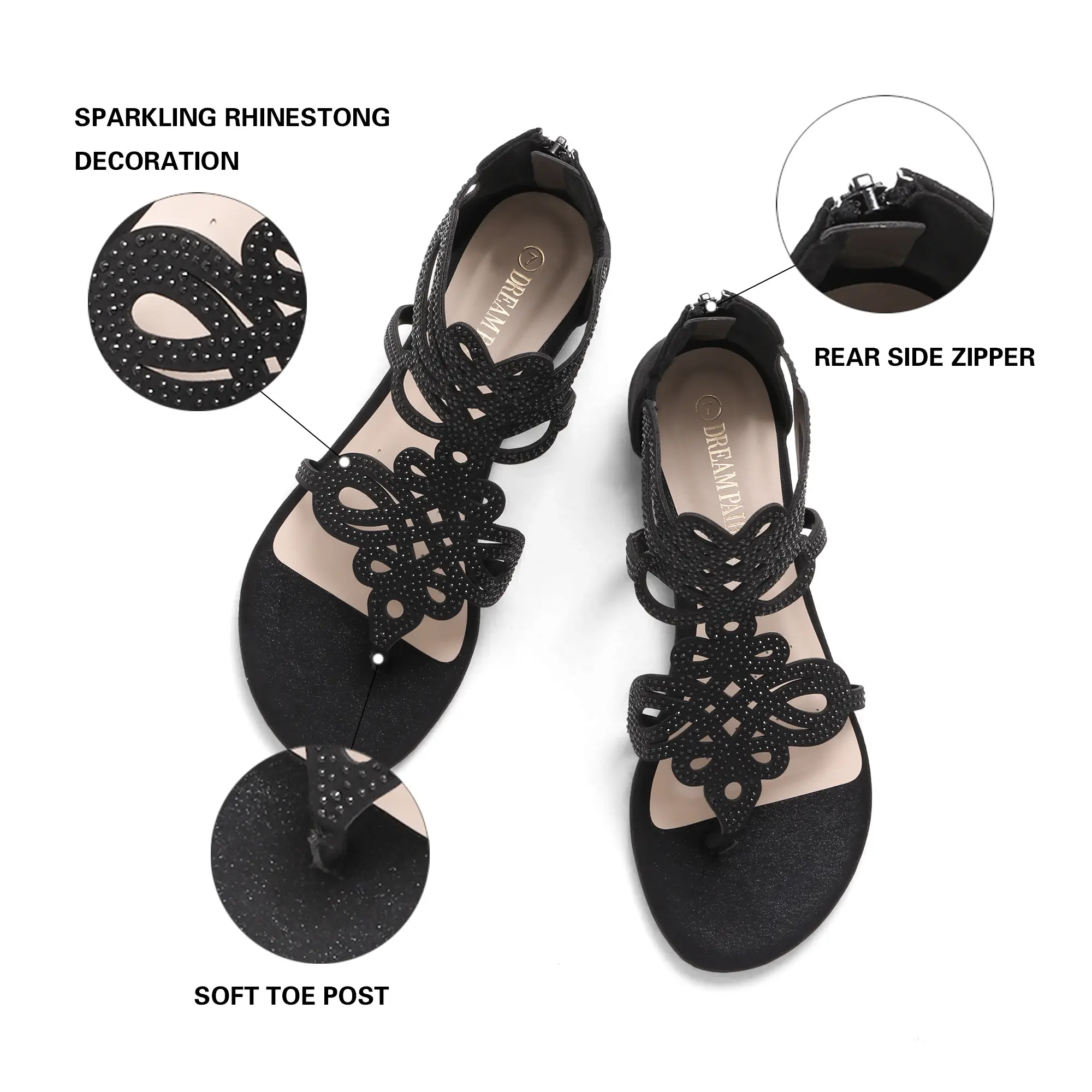 Shine this summer in these Dream Pairs women's rhinestone flat sandals. An open toe design keeps feet feeling refreshed, while a rear zipper helps keep feet secure. Ideal for a wide variety of occasions – from business to pleasure.