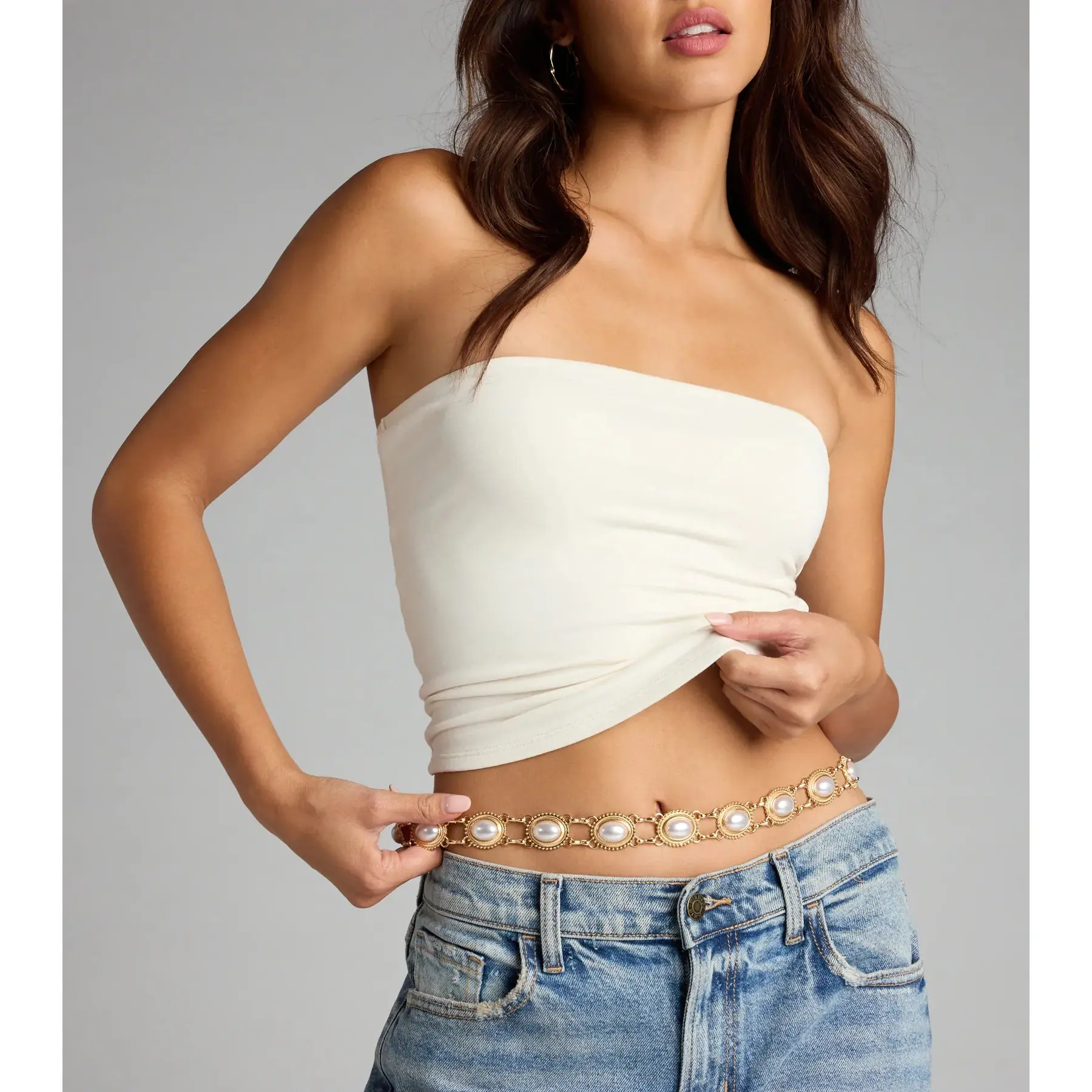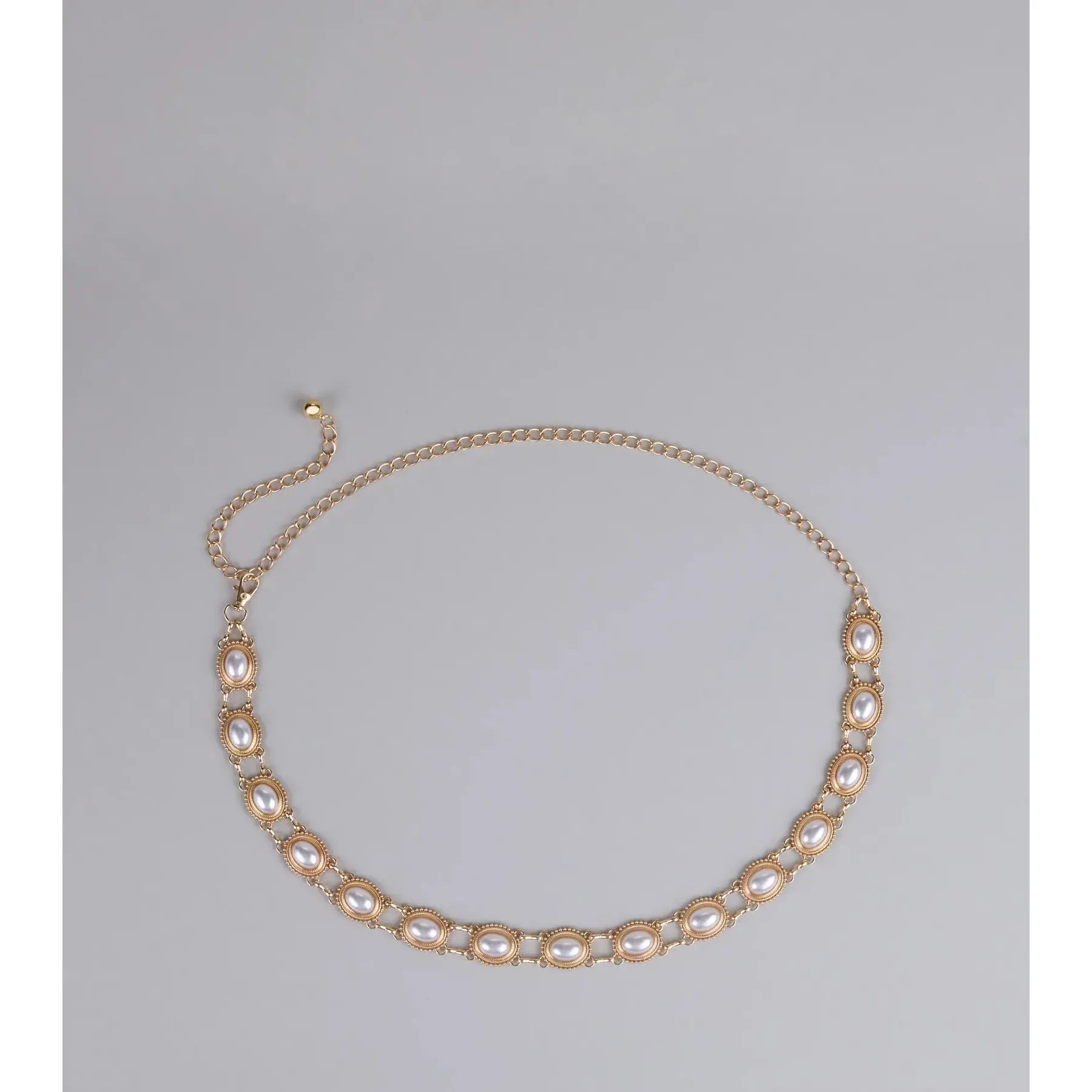 This pearl-detailed chain belt brings timeless elegance with a modern twist—ideal for cinching slip dresses or elevating your fave jeans-and-tee combo.