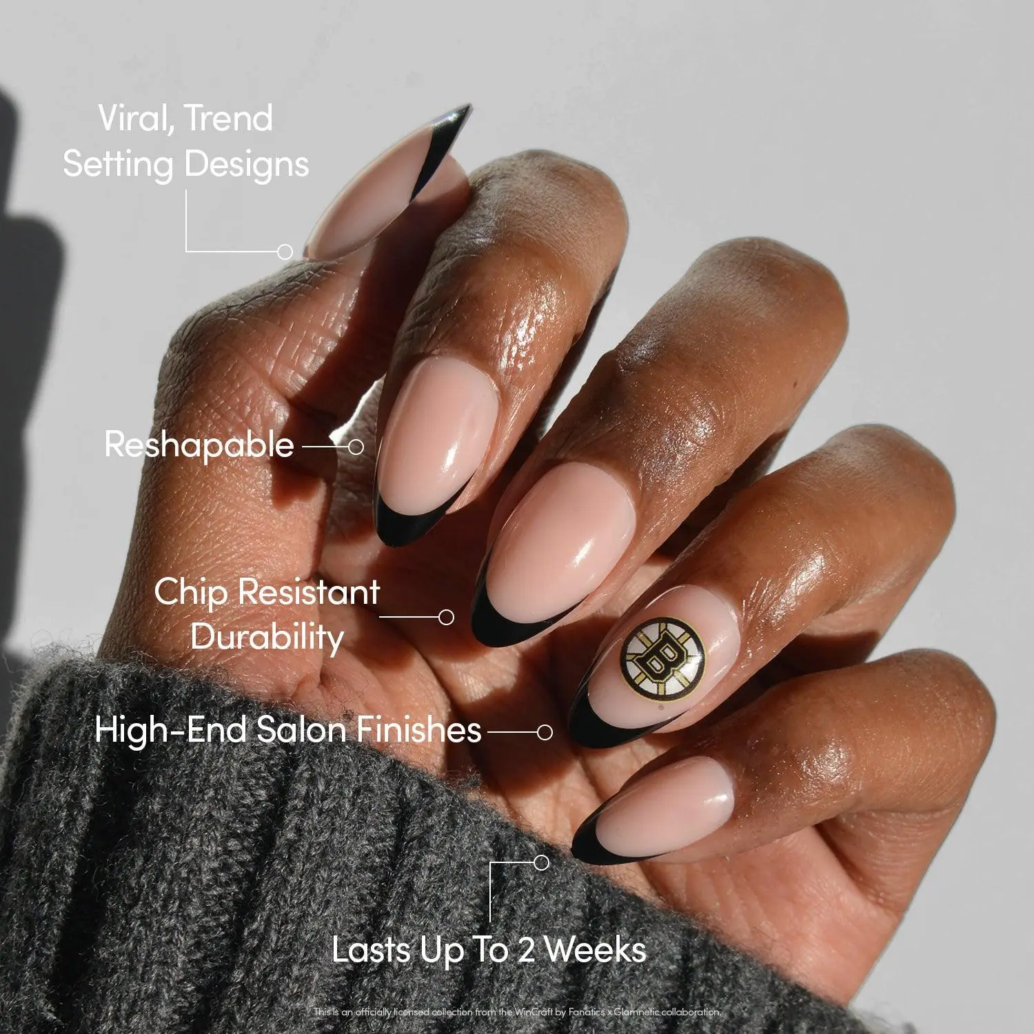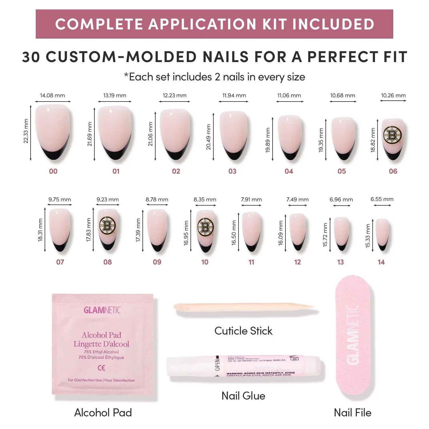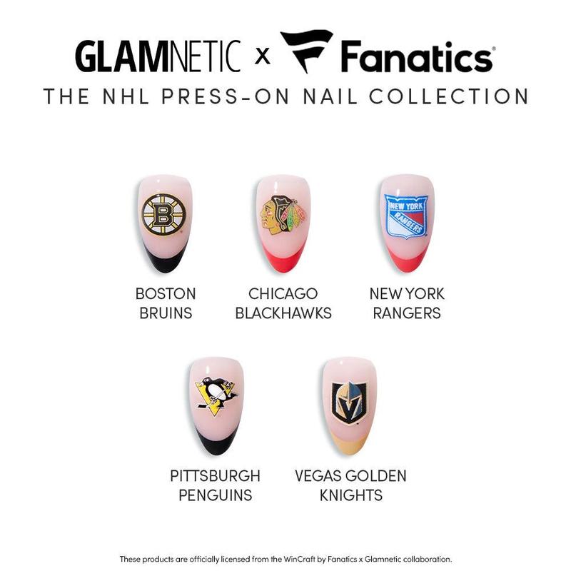 🏒 Glamnetic x Fanatics NHL Press-On Nail CollectionWhere icy style meets serious glam.Take your game day look to the next level with the limited-edition Glamnetic x Fanatics NHL Press-On Nail Collection — the ultimate fusion of fierce fandom and flawless beauty. Whether you’re heading to the arena, hosting a watch party, or cheering from the couch, these press-ons let you rep your team with next-level style.Each set features our signature French tip design paired with custom accent nails showcasing your favorite NHL team, so you can stay polished and proud through every period. 💅 Why It’s DifferentOfficial NHL Designs – Accent nails proudly feature your team’s logo in a clean, timeless French tip style.High-Gloss UV Finish – UV top coat adds chip resistance and a salon-quality shine.Waterproof + Long-Lasting – Stay flawless through every slapshot, power play, and OT win.100% Vegan & Cruelty-Free – Because glam should always be guilt-free.Customizable Fit – Made from high-quality material that’s easy to file or clip without cracking or bending.Eco-Friendly Packaging – Clear PET plastic tray is 100% recyclable. 📦 What’s Inside (Per Kit)