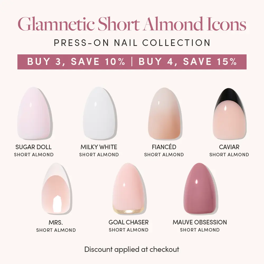 Stay loyal to your favorite shape with the Short Almond Icons Collection — new press-on nails, each in a timeless design, inspired by some of our most-loved manis. From chic French tips to soft pinks and milky manis, every style looks instantly sleek in short almond’s naturally elongating shape. Effortlessly chic, eternally elegant — these were always going to be iconic.