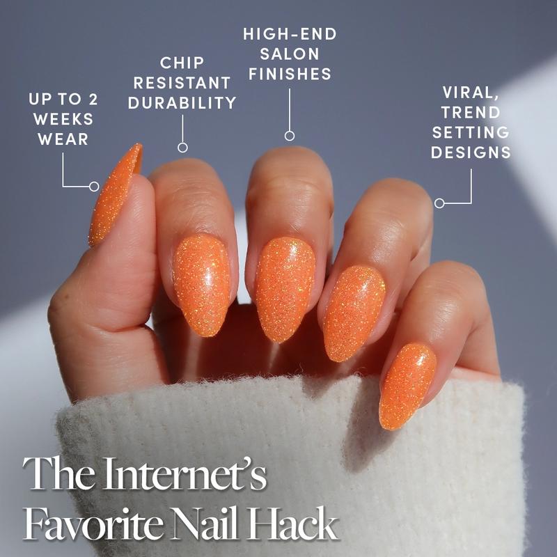 Obsessed!! The sparkly orange color is gorgeous and the nails themselves lasted so long without breaking!