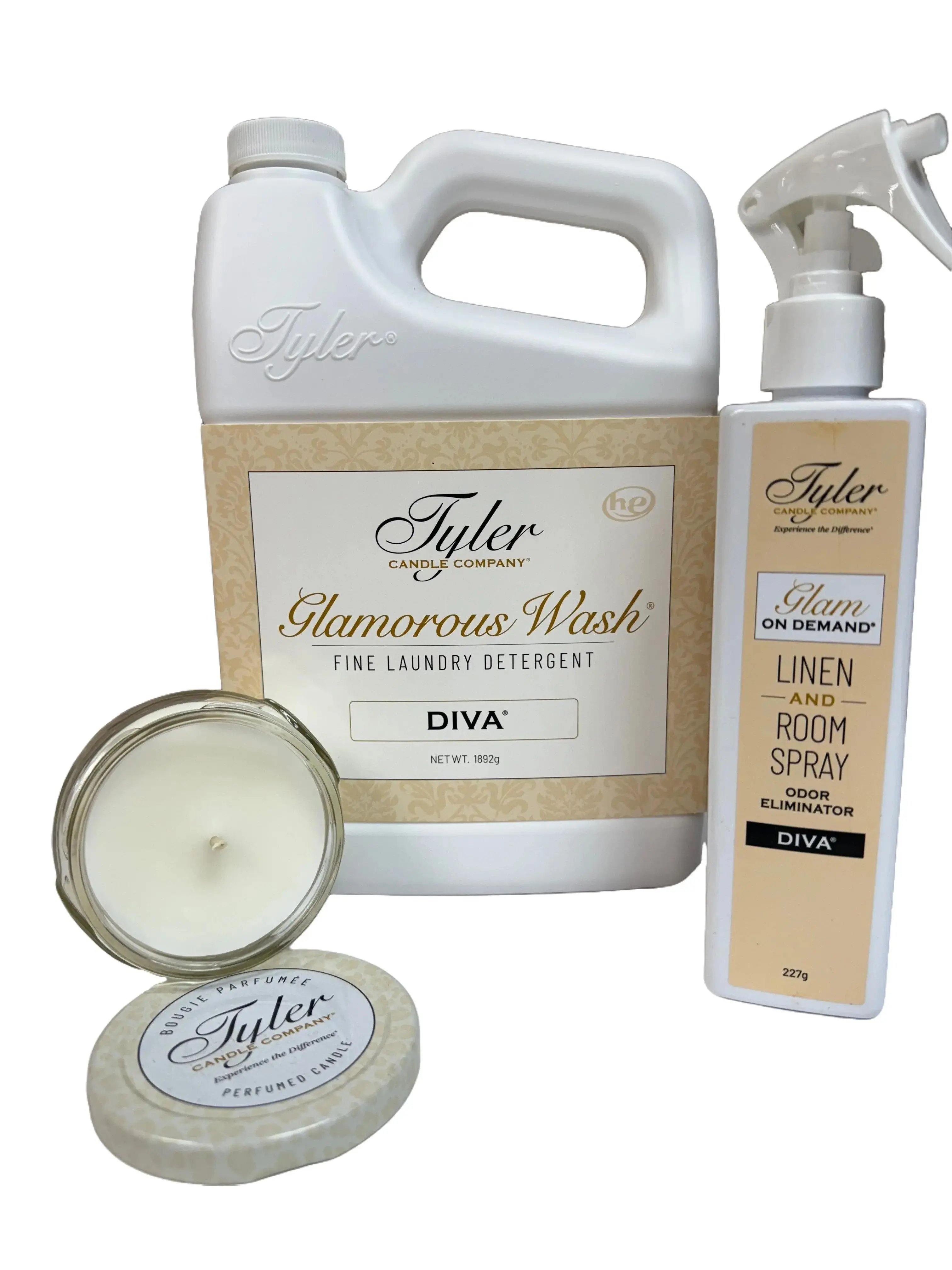 The best smelling Diva Glamorous wash by Tyler Candle Co. now available in a trio! You get the laundry soap, the room spray, and a candle for such a great price! @Tyler_candle_company_llc @FrenchKissBoutique #tiktokshopcreatorpicks #holidayhaul #laundrydetergent #tylercandlecompany