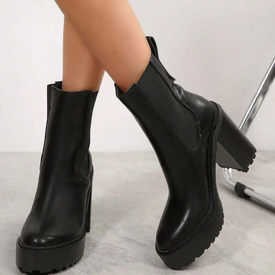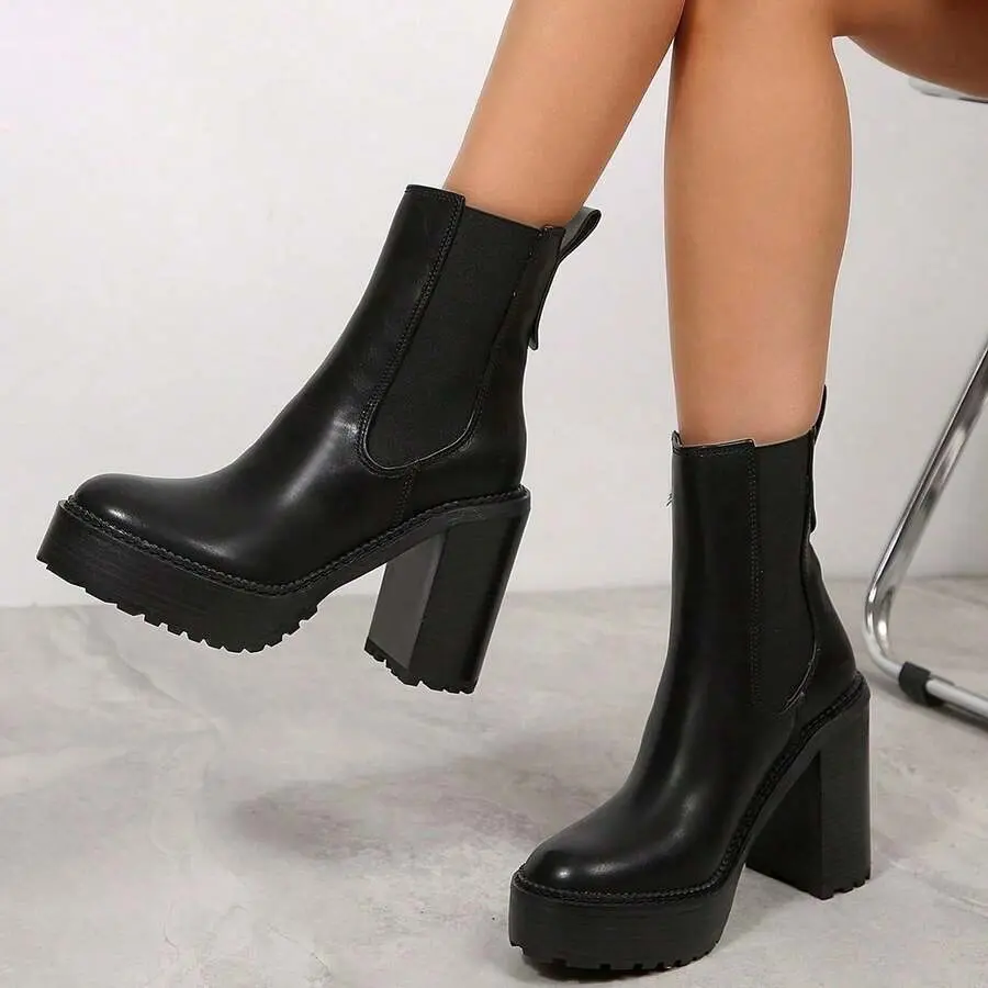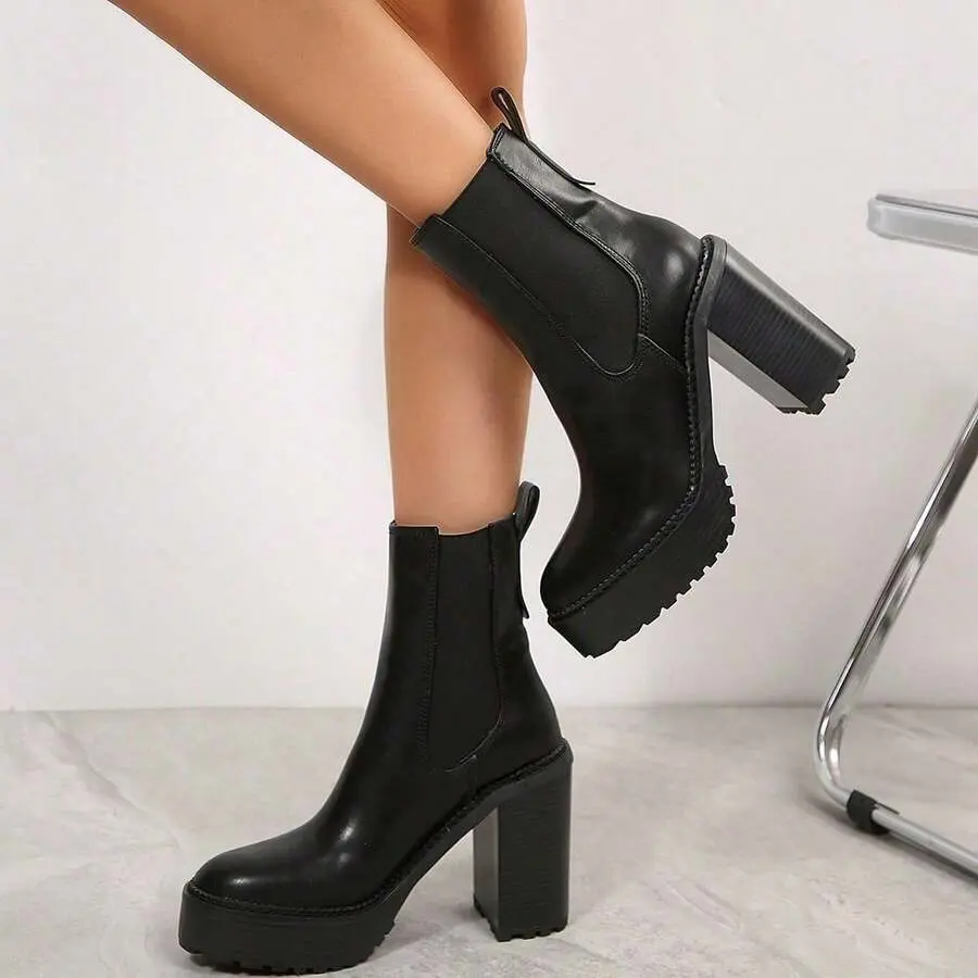 Perfect for pairing with jeans, skirts, or dresses, these platform ankle boots easily complement casual, chic, or streetwear looks for fall and winter.