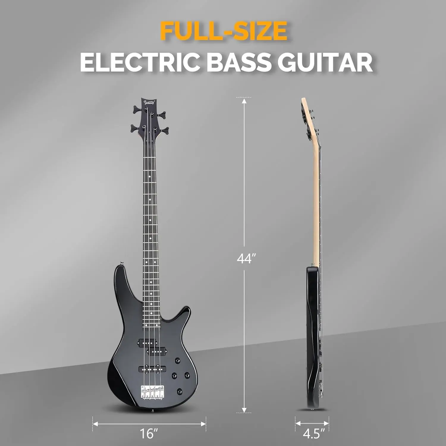 5. GLARRY 4 String Electric Bass Guitar Beginner Kit,GIB Series Full Size Solid Body Bass Guitar with 20W AMP, Gig Bag Backpack and Accessories (Black)