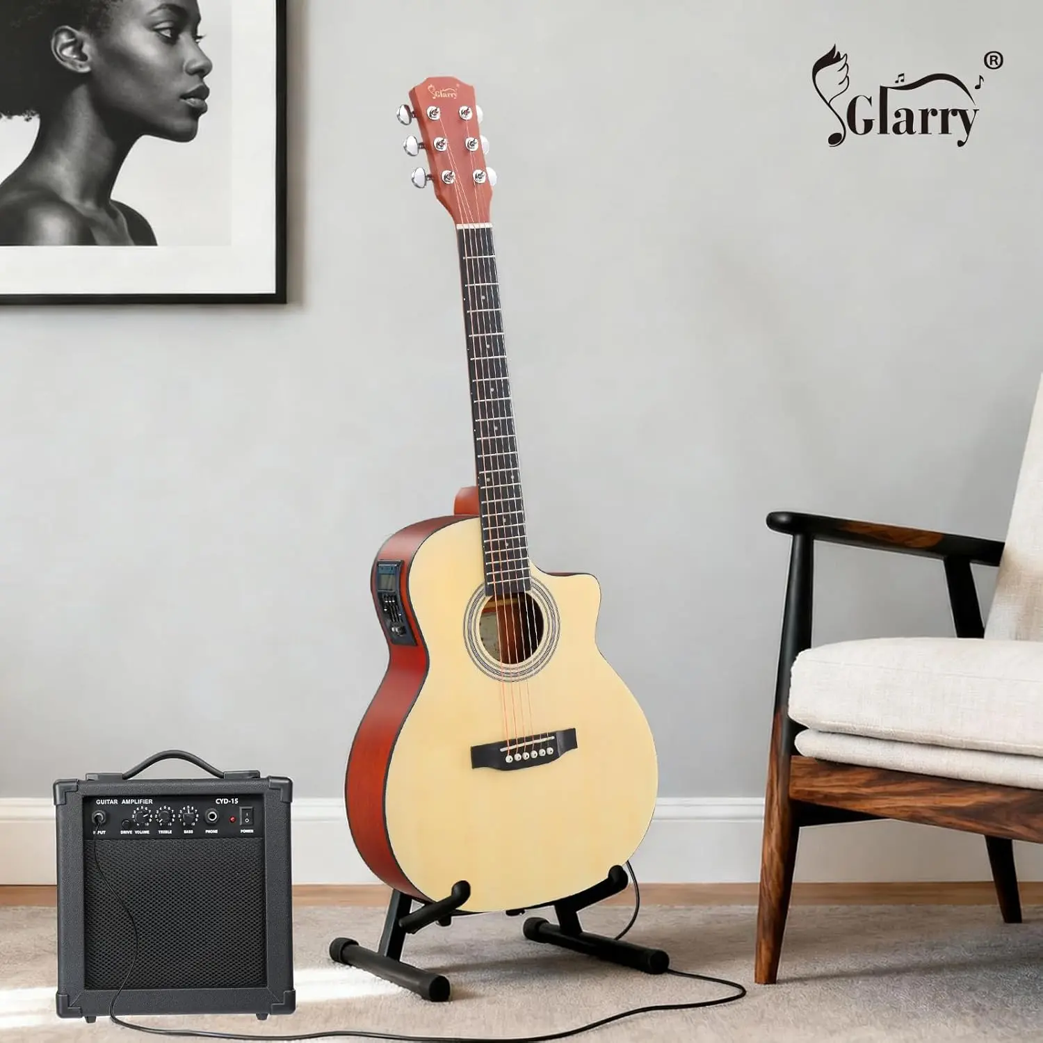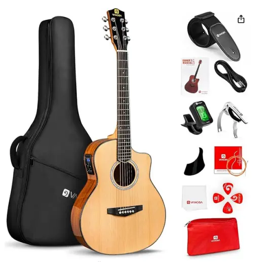 COMPLETE ACCESSORIES KIT: The all-in-one acoustic electric guitar kit includes an 15W amplifier, guitar bag, strap, picks, cable, spare strings and a wrench. It is convenient for beginners who can use it right out of the box.