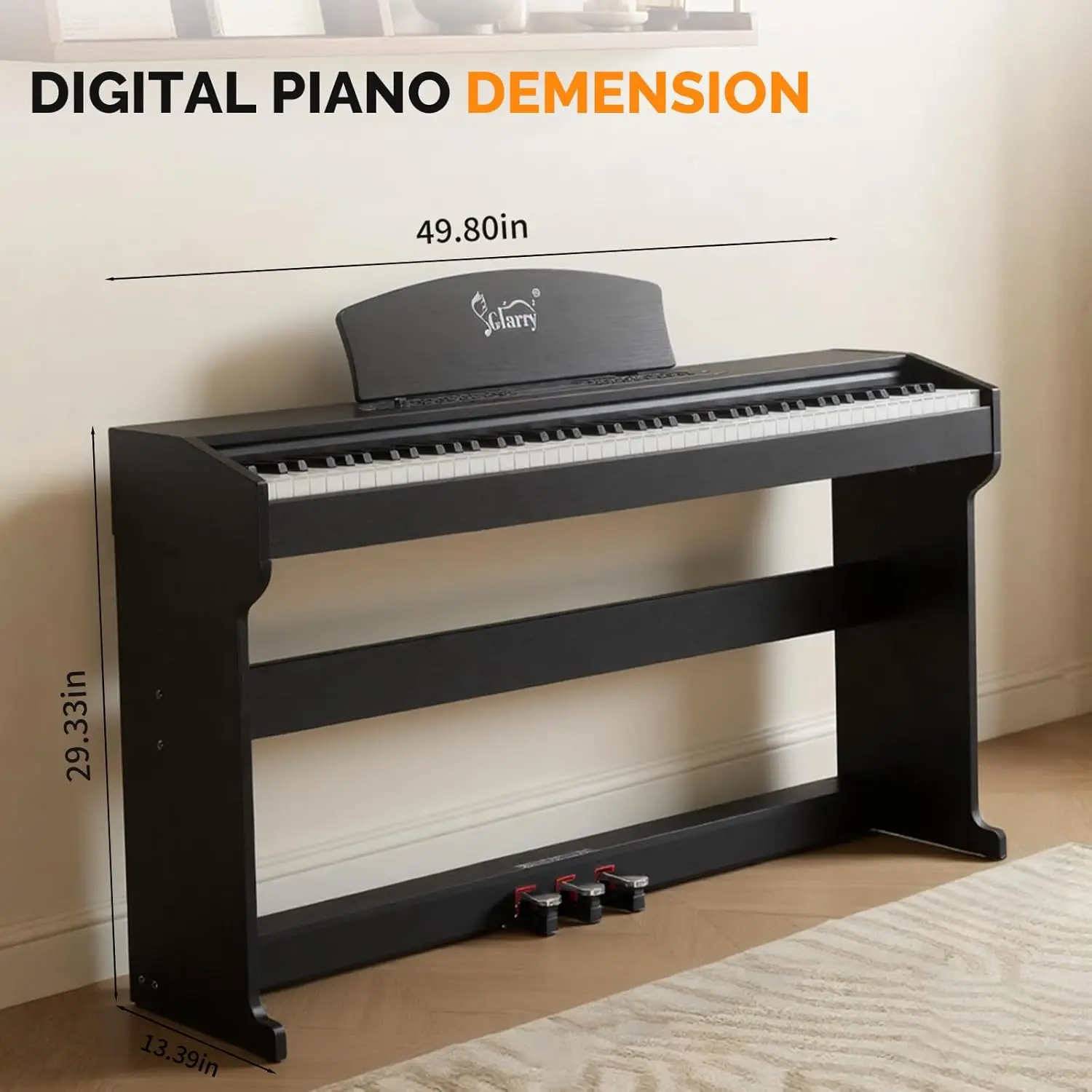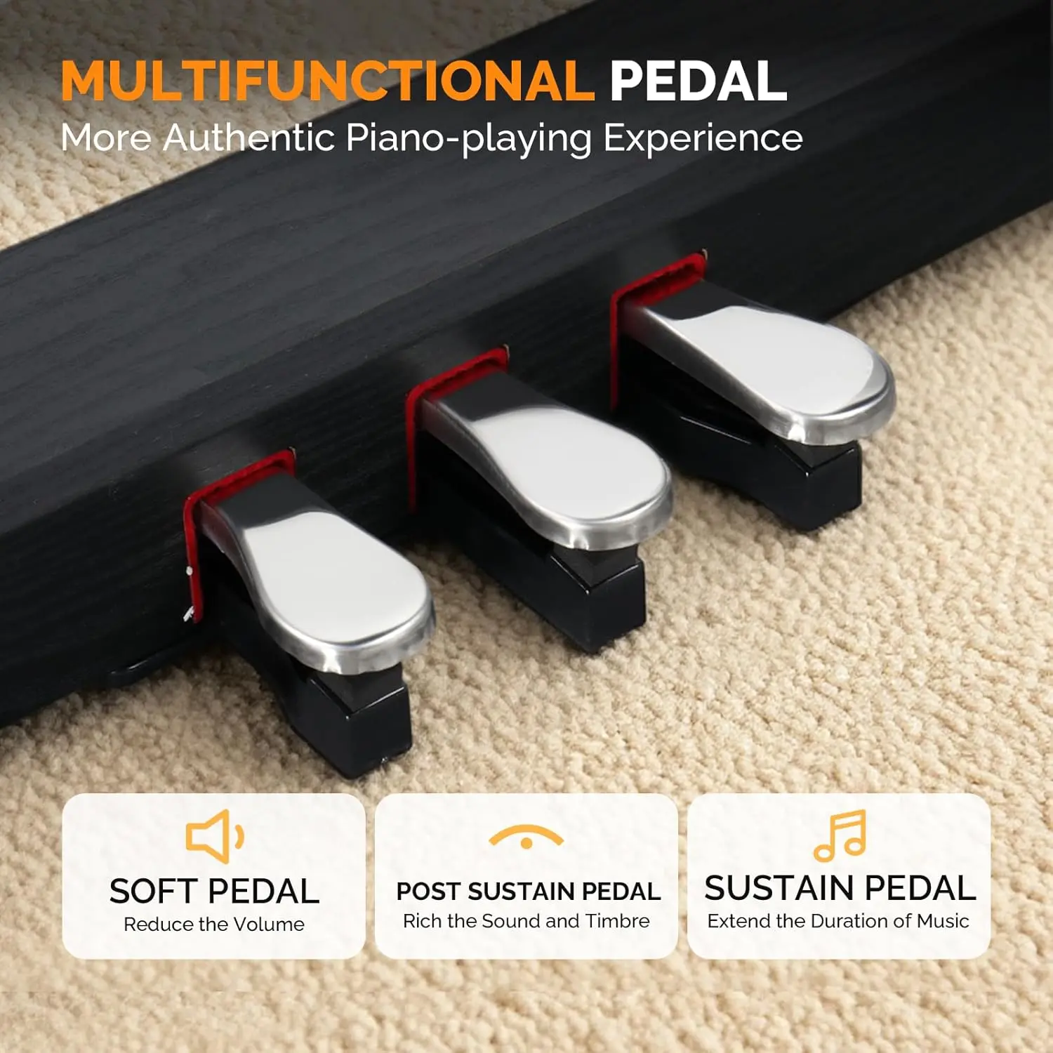 Reality Feeling: The design of the appearance and the level of configuration imitate a real piano, which gives you a real experience and feeling. The realistic tactile sensation of the keyboard with similar resistance and rebound, beautiful sound feedback and the tripal pedals simulate the traditional piano, all of which can bring you a realistic feeling. Not only that, the digital piano can also reduce maintenance costs and save you a lot of space.