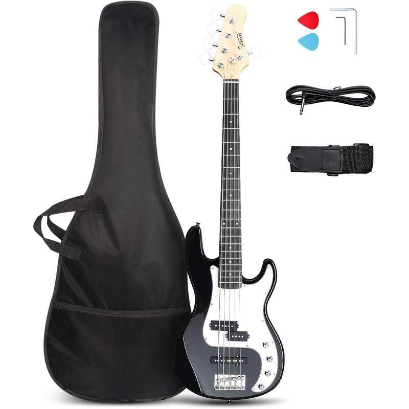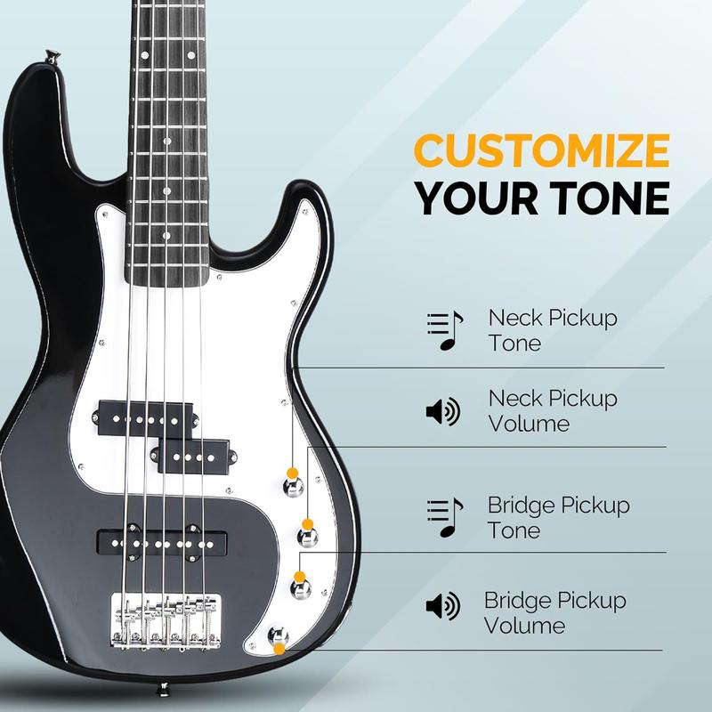 EXCELLENT TONE DISPLAY: The full size 5 string bass guitar is a ideal gift for beginners and suits aspiring musicians too. With 1 split single-coil pickup and 1 single pickup, 2 volume knobs and 2 tone knobs, this expanded tonal palette enables bassists to create clear, loud and expressive sound
