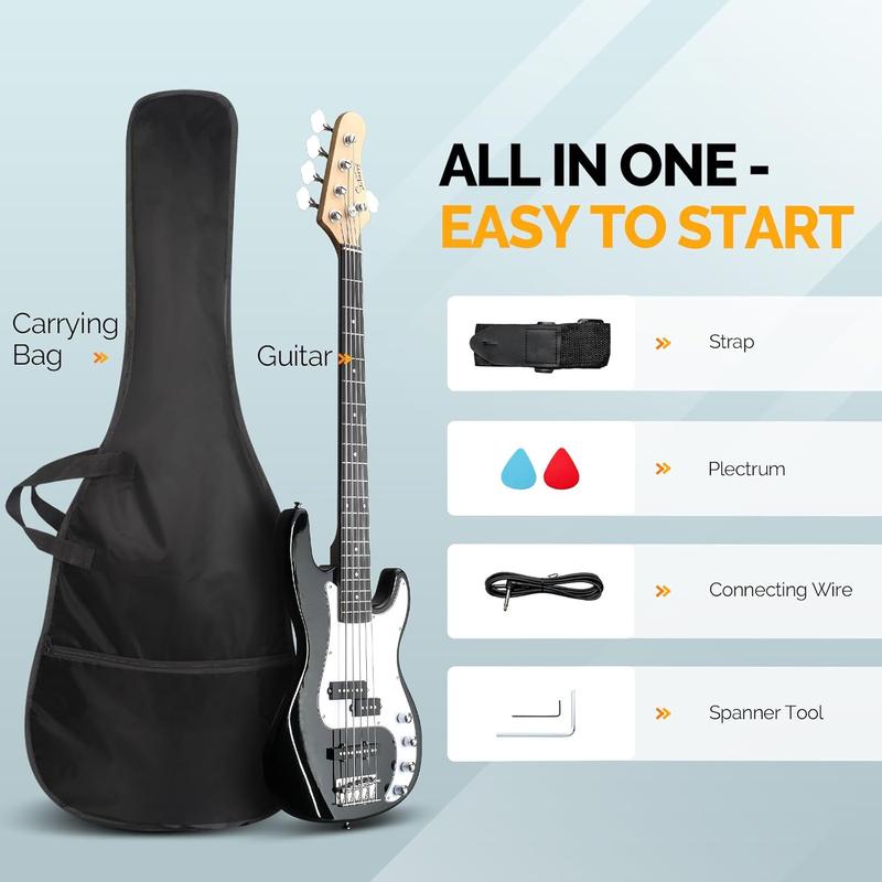 PERFECT ACCESSORIES: Come with 1× Electric Bass Guitar, 1× Portable Guitar Bag, 1× Shoulder Strap, 1× Bass Pick, 1× Amp Cord. You can play our bass immediately after opening a package