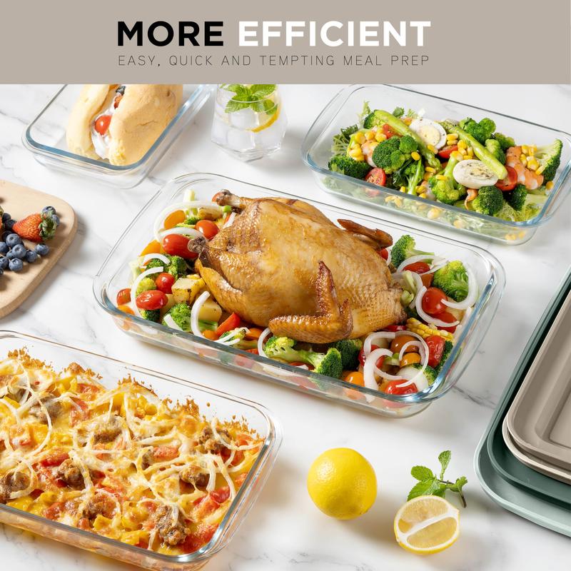 ·PREMIUM LARGE BAKING PAN SET: Our baking dishes are made of borosilicate glass, can be used in microwave, oven, freezer and dishwasher, goes straight from the refrigerator to the microwave or oven to the table without the risk of cracking or shattering