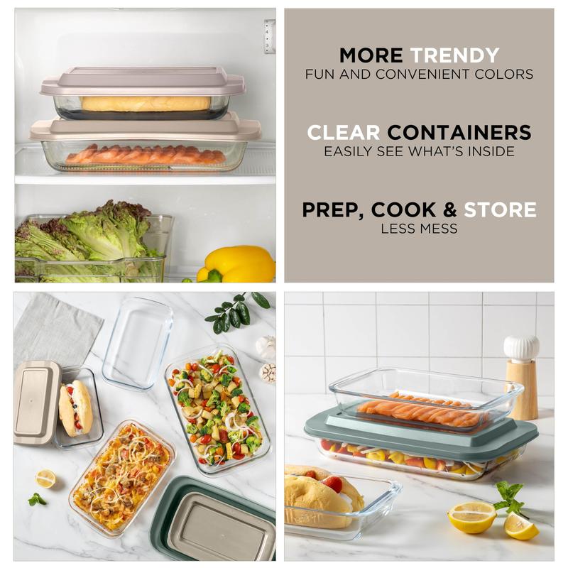 ·OMBRE LIDS: The clear glass baking pan makes a nice, attractive presentation for enjoyable baking time, a charming decoration in your dining table and kitchen. It also lets you monitor the baking process, serve your meals in a stylish and elegant fashion and easily identify leftovers. You'll love the ombre colors.