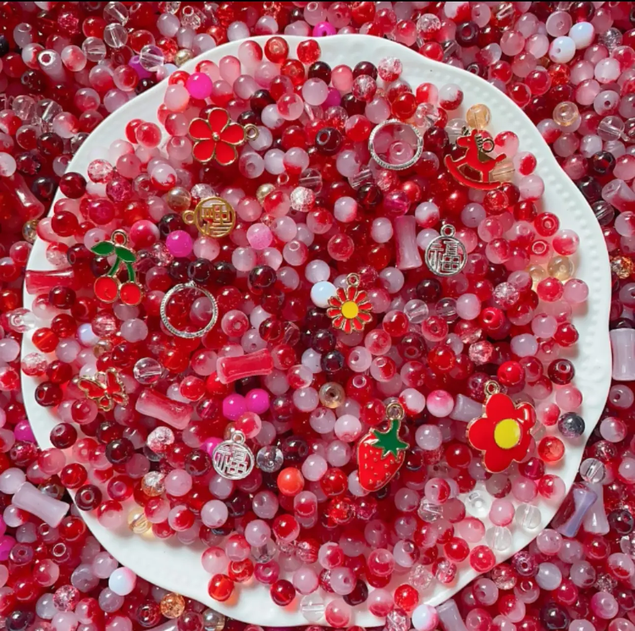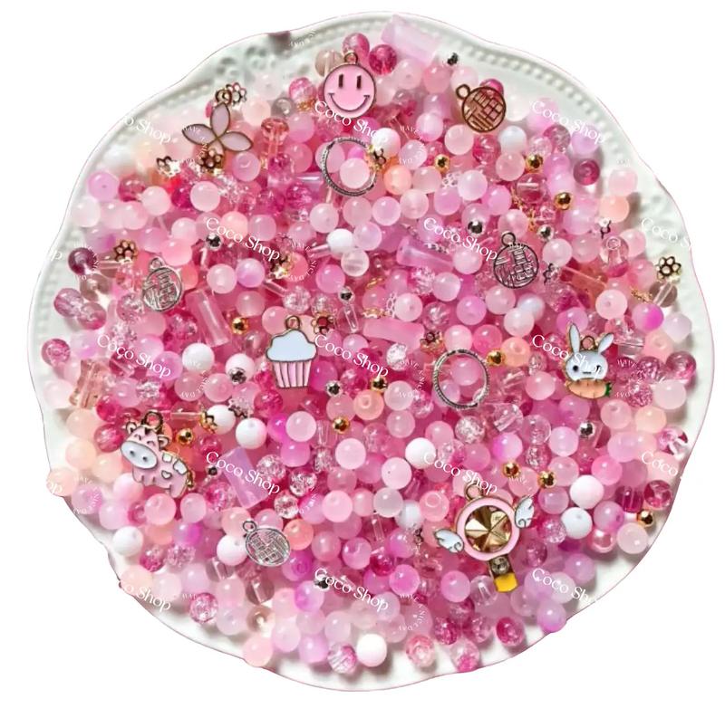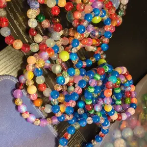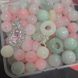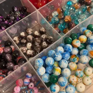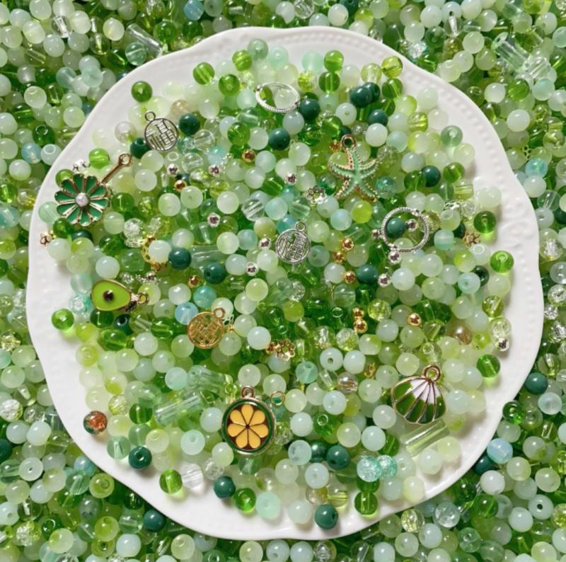 📏 Beads Size: 4mm-12mm. Main sizes are 8mm and 10mm. Beads style includes solid color, transparent, sparkling, faceted, crackled design, marble, stripes, round, oval, cube, duck, and different shapes.