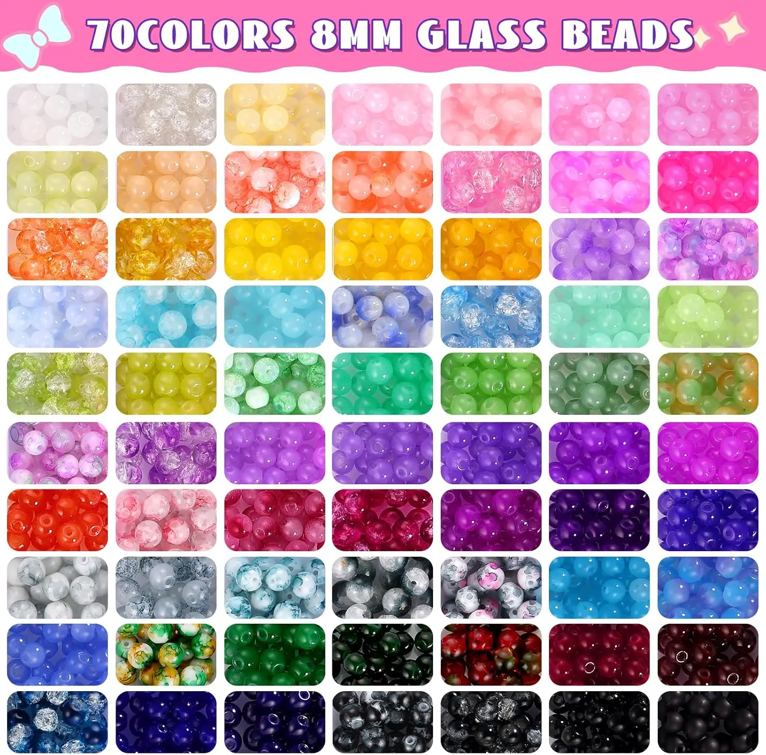 【Quality Glass Beads Kit】Our glass beads are made of premium glass material, all round beads have been finely polished to making each bead more textured, sleek and shiny, lightweight and waterproof, not easy to fade, comfortable to wear.