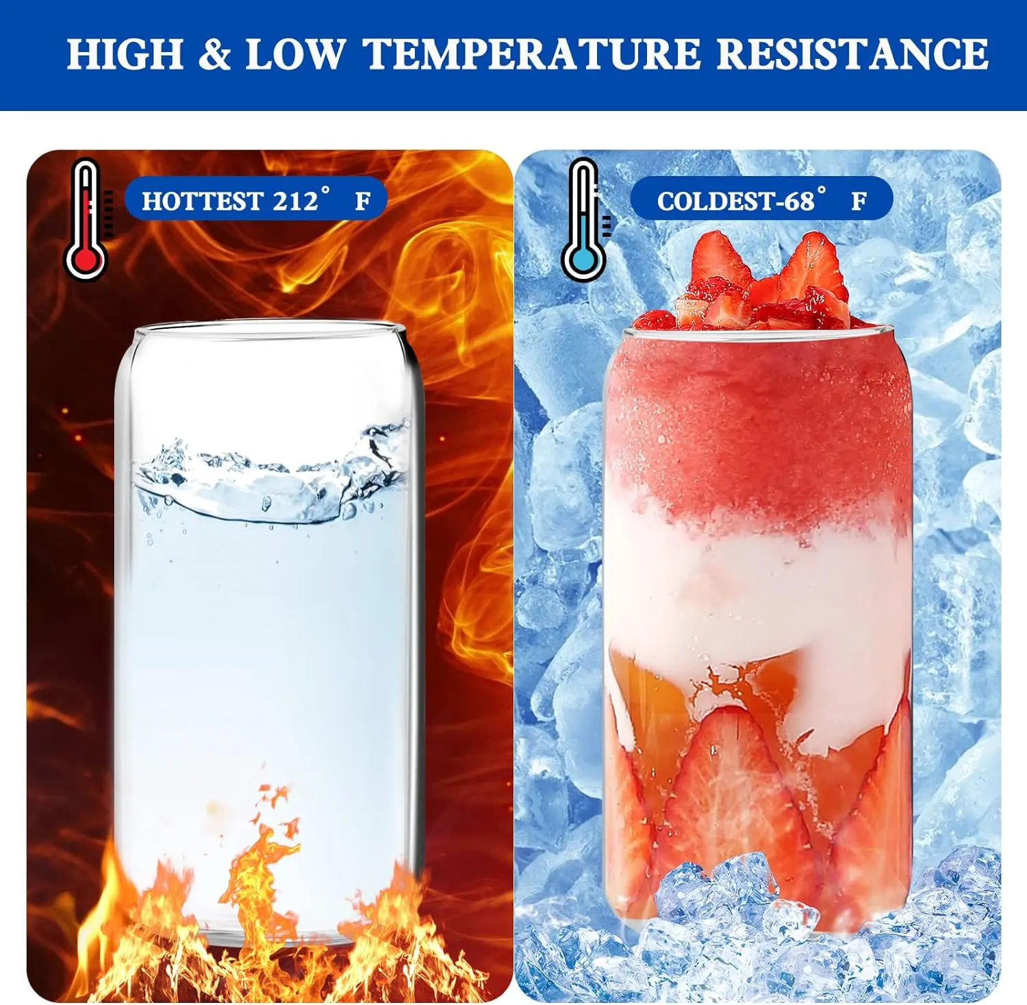 Unique Can Shaped Design: The beer glasses cups are made of more superior and transparent food-grade borosilicate glass(BPA-Free, Lead-Free, withstand -68°F to 212°F), The Unique Can Shaped Design which makes this a great option for diy on it whether it be painting, edging, Engraving or use stickers on it.