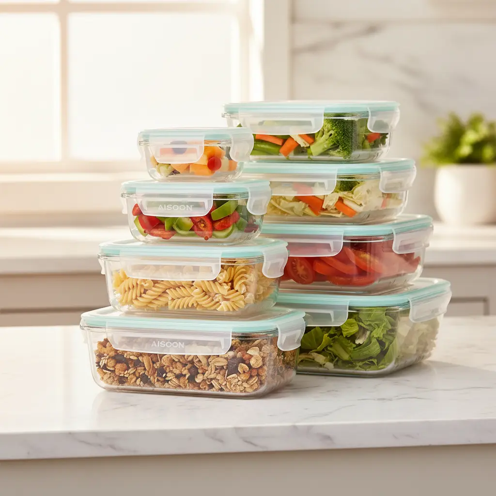 ·3 Shapes × 4 Sizes (Total 12 Containers)Round, Square, Rectangle – 4 of each Capacities range from 5 oz to 33 oz