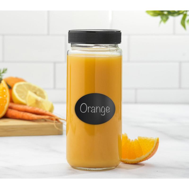 Sleek and modern, this set of eight juice bottles each feature a durable plastic lid and a design that's perfect for anything from OJ to cold brew. From JoyJolt.