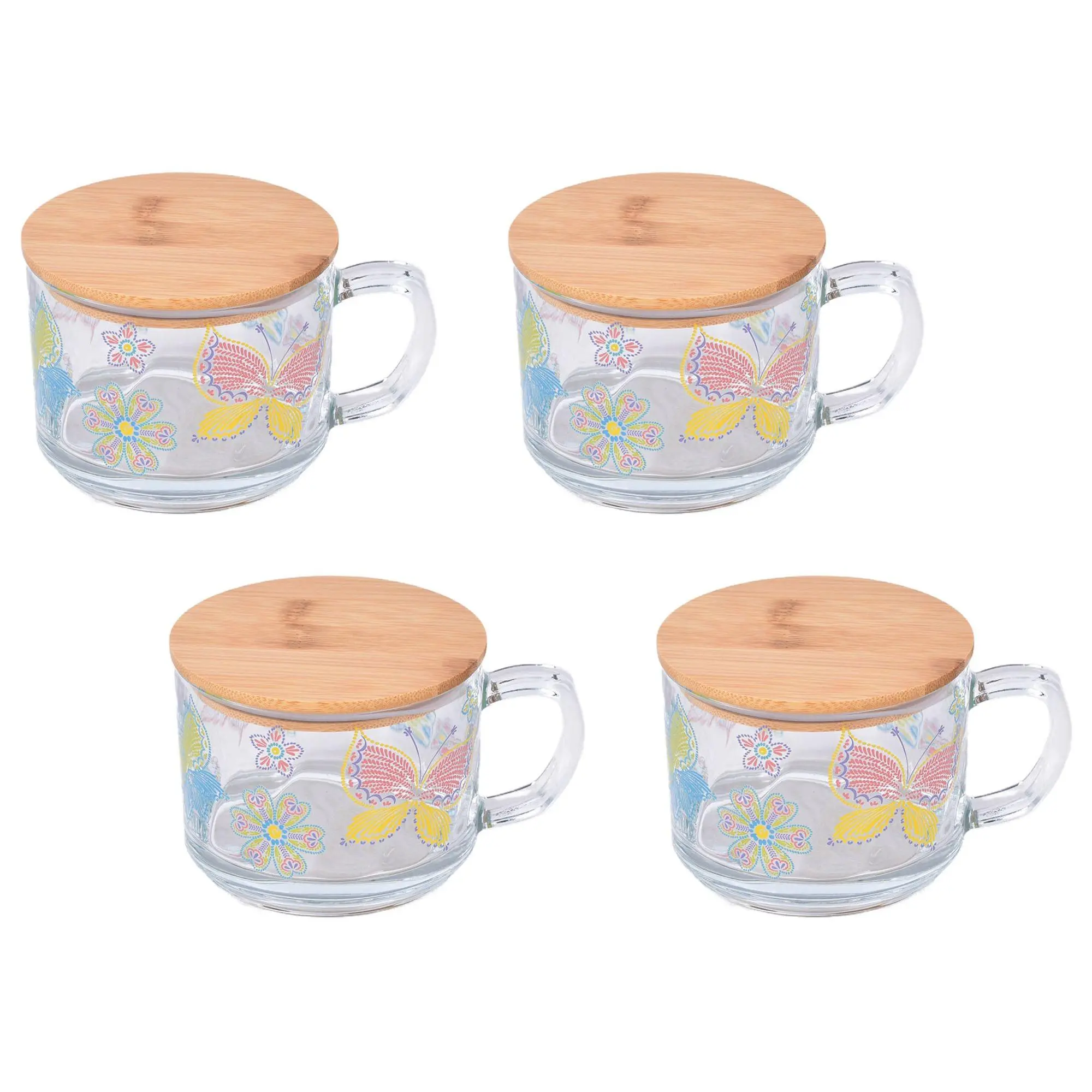 ·Includes four 16-oz glass mugs with wooden lids