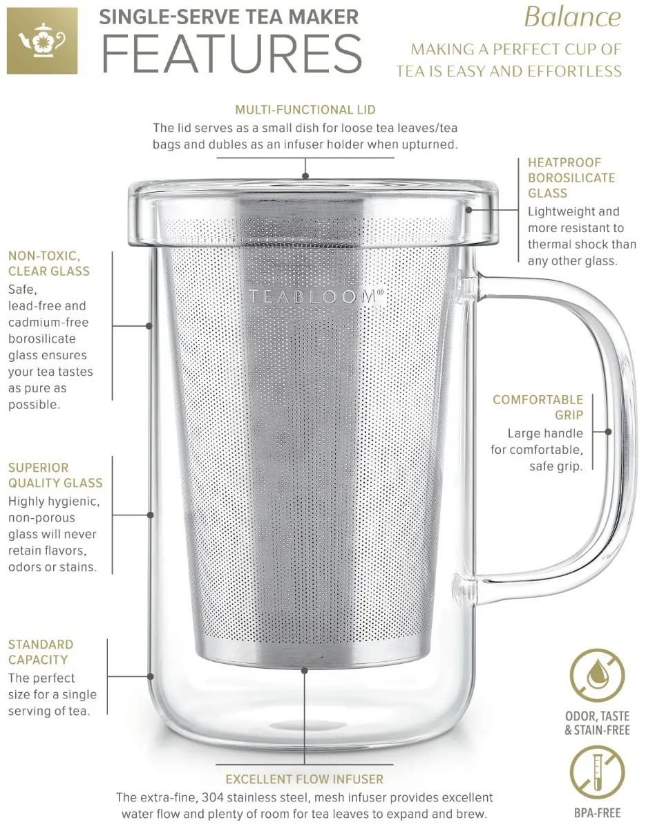 Multi-Purpose Lid/Dish: The included glass lid serves a dual purpose - use it as a lid to keep your tea warm while steeping, and when your tea is ready, flip it over to use as a convenient dish for the infuser, keeping your countertop clean and tidy.