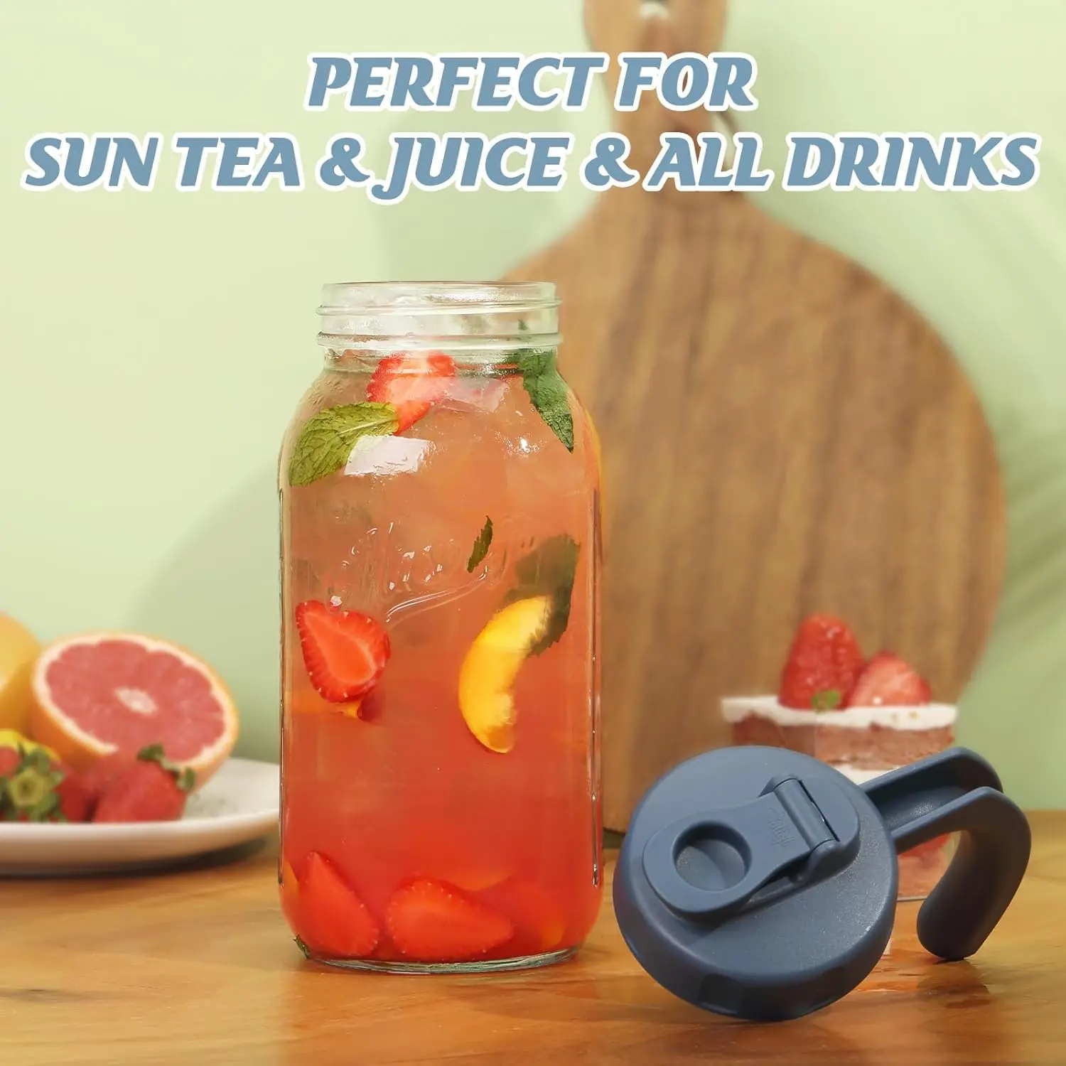 ·Easy to Use & Clean - Soligt original mason jar pour spout lids with handle make it very clean to pour coffee and other drinks, The whole mason jar tea pitcher is both hand washable and machine washable. Perfect size to store in refrigerator.