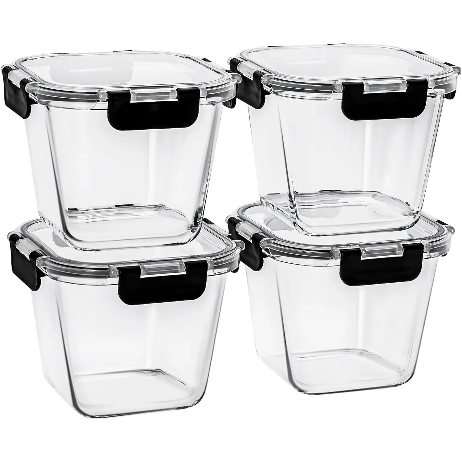 4 PACKS GlASS SOUP CONTAINERS: This glass storage containers sets includes 4 count 32 oz containers. Size: 5.6 inch x 5.6 inch x 4.3 inch for meal prep, office lunches, leftovers, soup containers, salad containers, bringing to the gym, picnics, travel and .