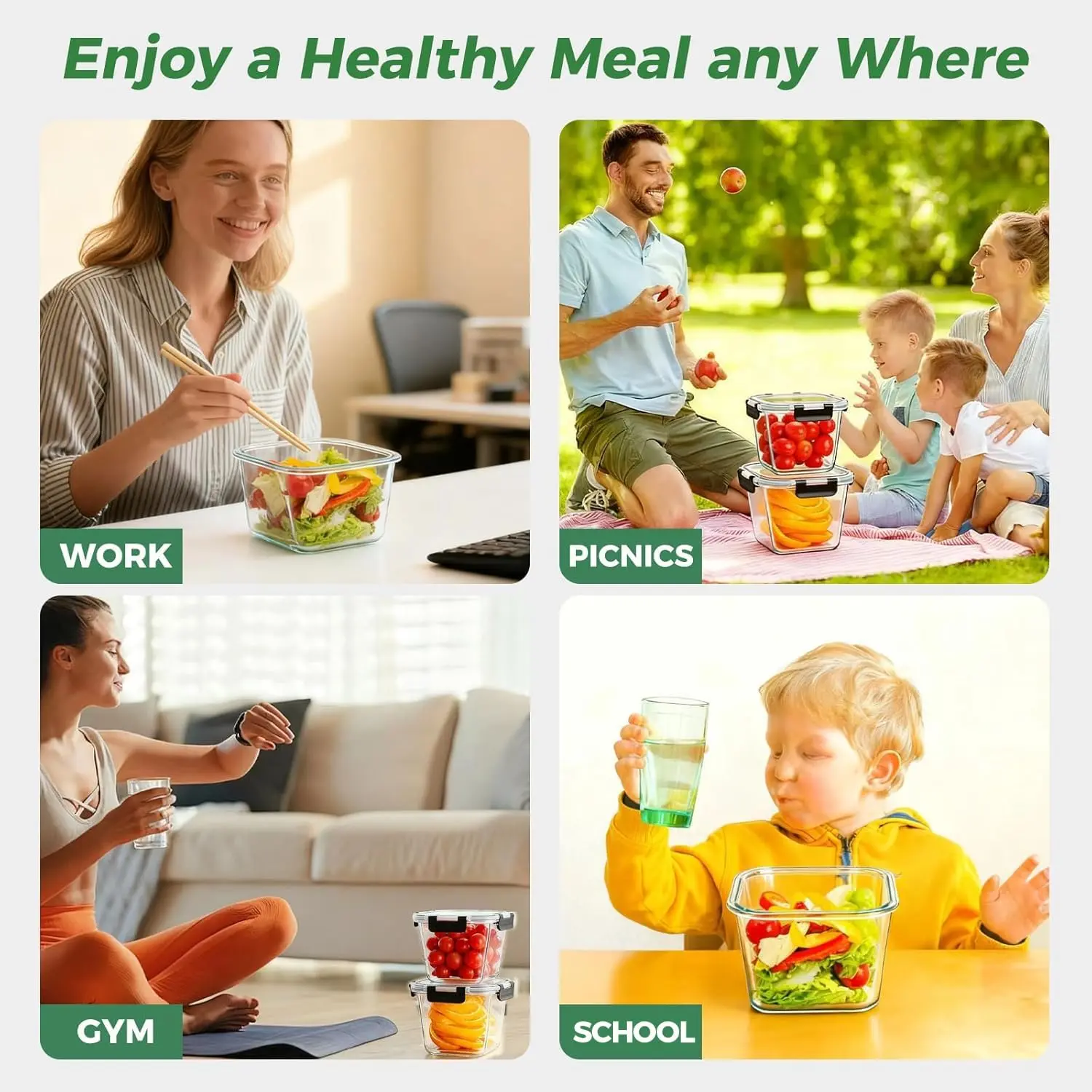 GLASS CONTAINERS: This glass container sets are made of borosilicate glass, these glass meal prep containers are microwave, freezer, and oven safe, allowing you to conveniently heat up your meals, freeze leftovers, or even bake and reheat dishes. It can safely go from the freezer to the microwave without cracking.