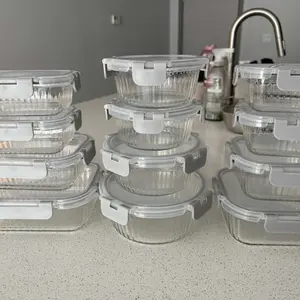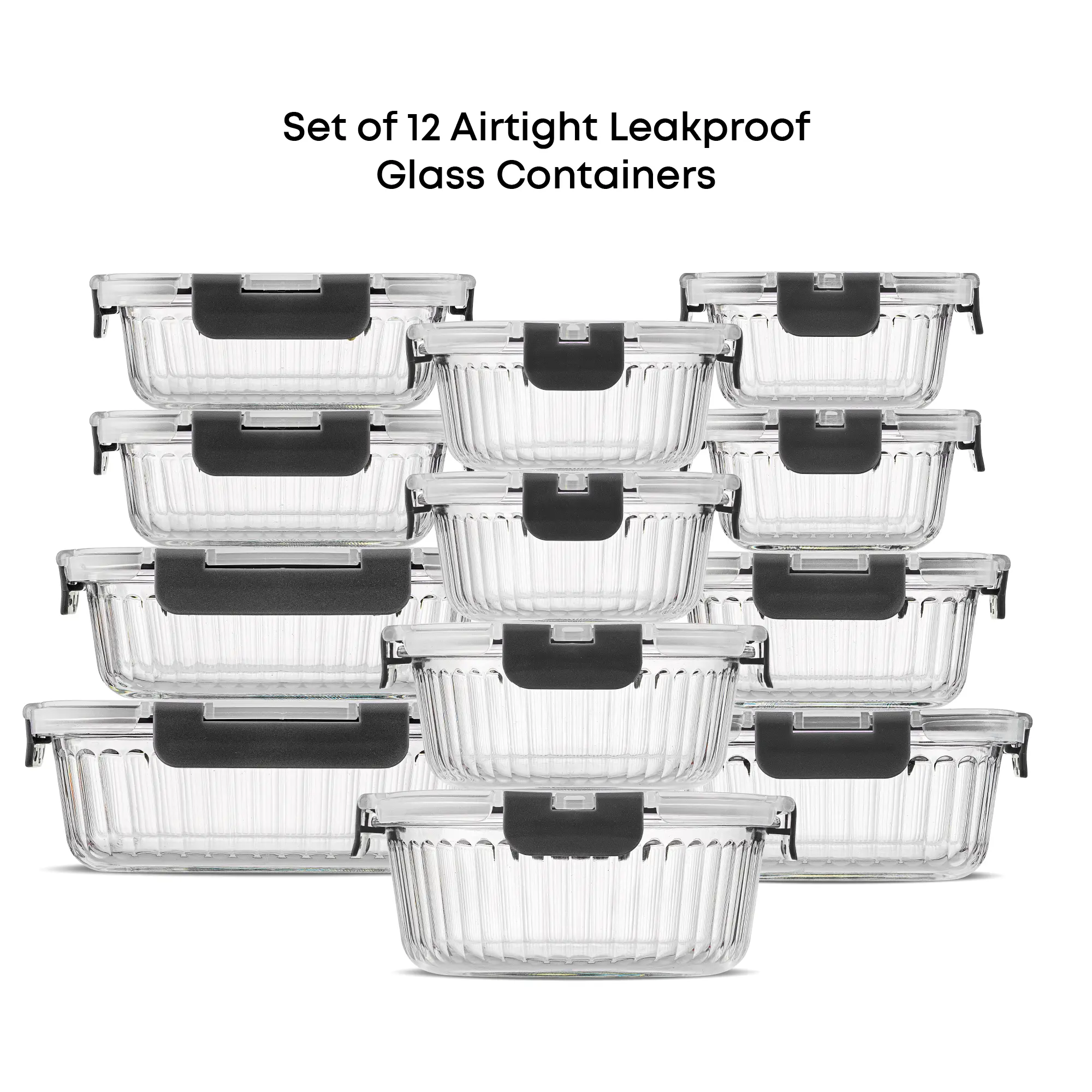 ·12 Ribbed Borosilicate Glass Containers with Airtight Lids