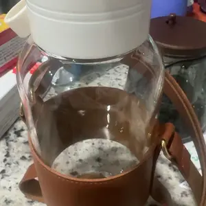 My bottle broke when I had it on the sling holder not enough support. Sling holder not study enough. Love the glass bottle tho. If you buy don't put it in the sling holder it will slide on one side and fall and break. Smh
