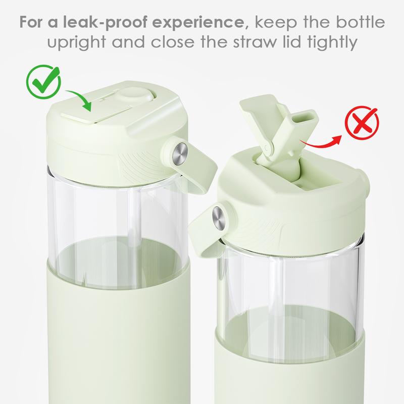 ·Safe and Stylish: Made from borosilicate glass and wrapped in a silicone sleeve, this 20oz Glass Water Bottle keeps your drinks safe and adds a modern touch to your routine.