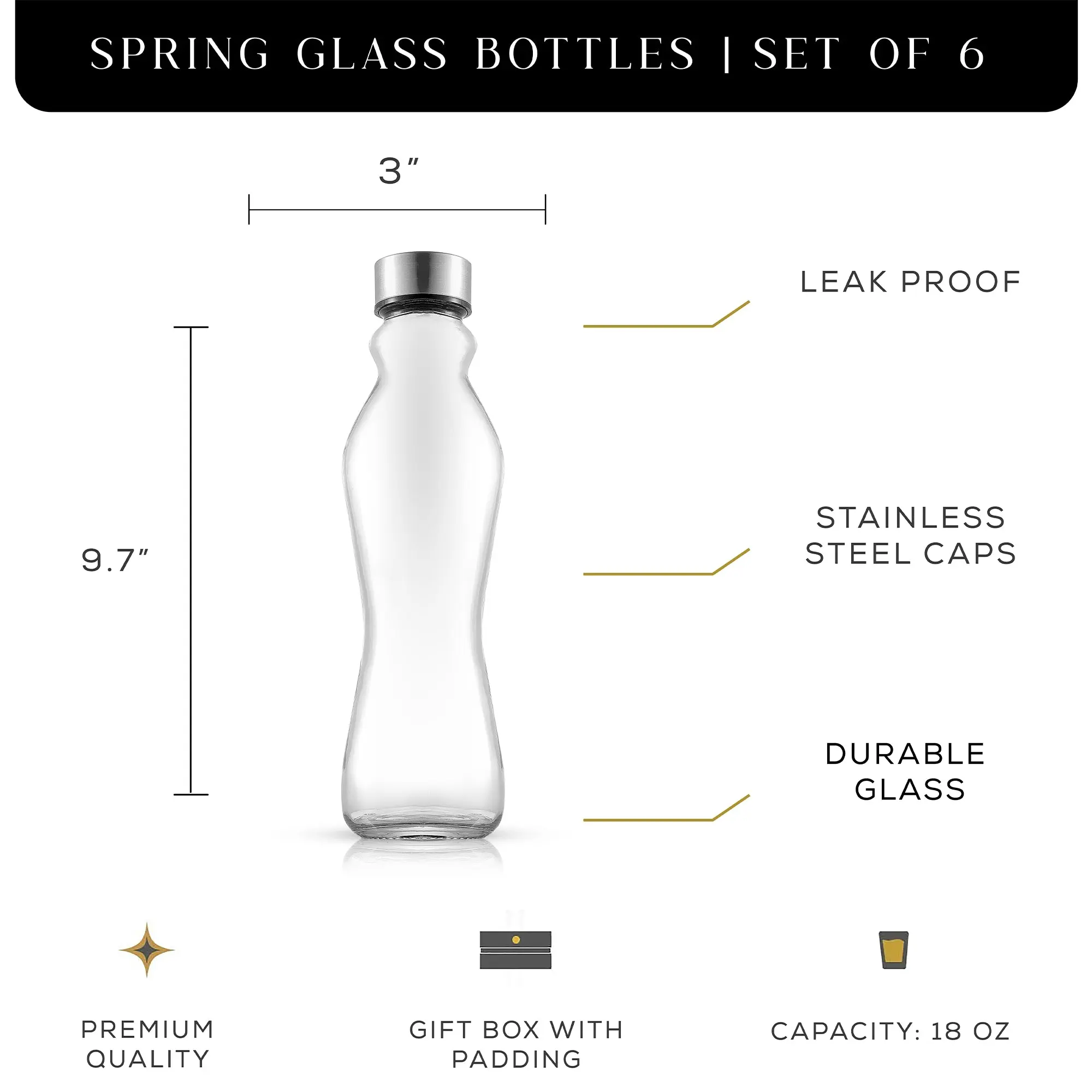Uncap a burst of refreshment with these reusable and refillable Spring water bottles! Crafted from lead-free glass, these beauties are your on-the-go companions for sparkling hydration. Whether you're crushing H20 goals, adding a touch of poolside glam to your iced coffee, or enjoying a bubbly juice fix with friends, the secure, leak-proof lids keep your favorite beverages perfectly contained. Dishwasher-safe and endlessly stylish, Spring bottles turn every sip into a celebration!