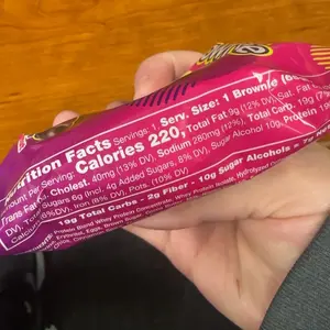 I’ve purchased these before from a local sporting store and the brownie was moist with delicious chocolate on top. These are not like the previous ones. These are dry with slightly discolored chocolate on them. Very disappointing compared to the previous ones and I won’t order again.